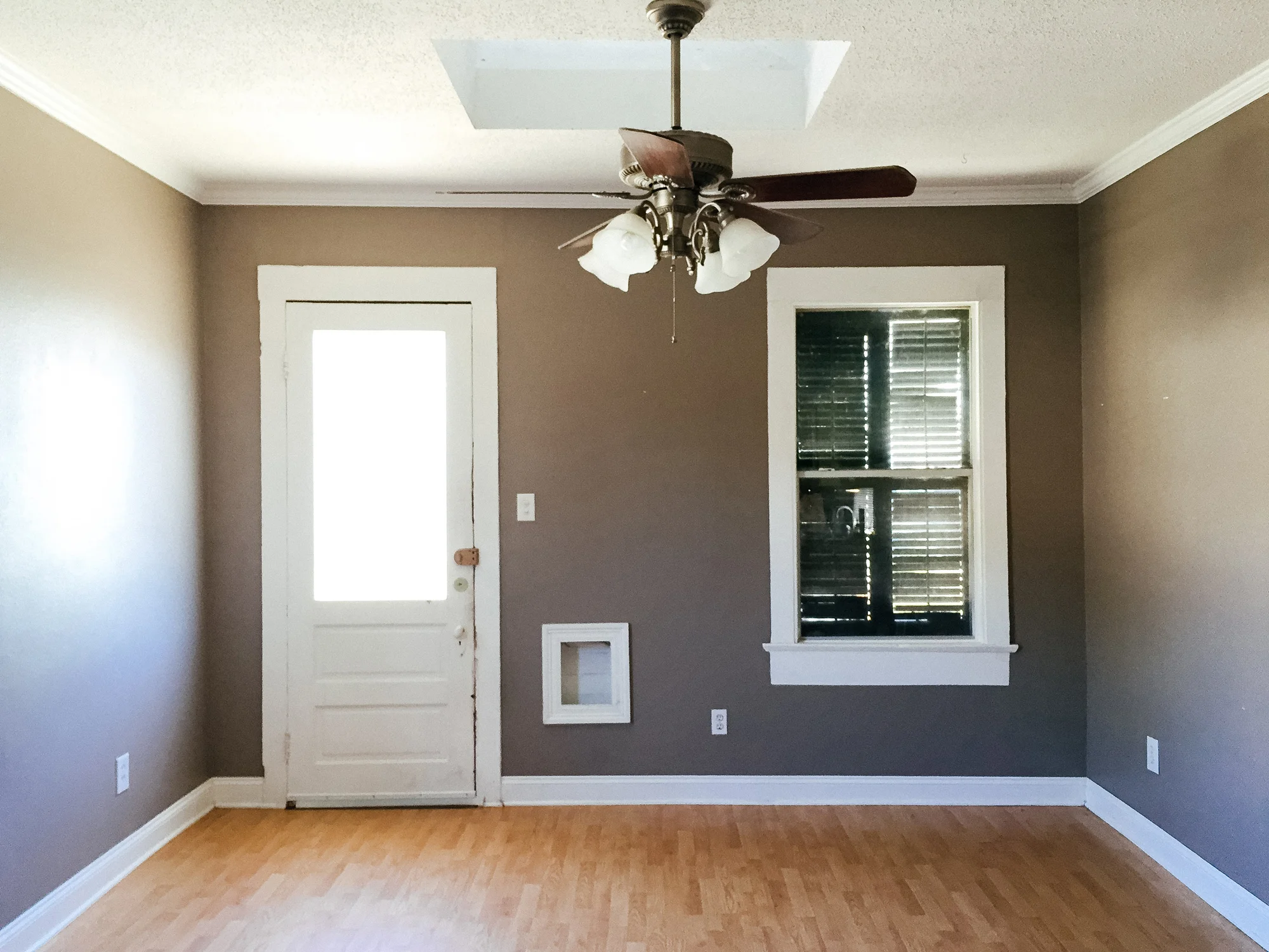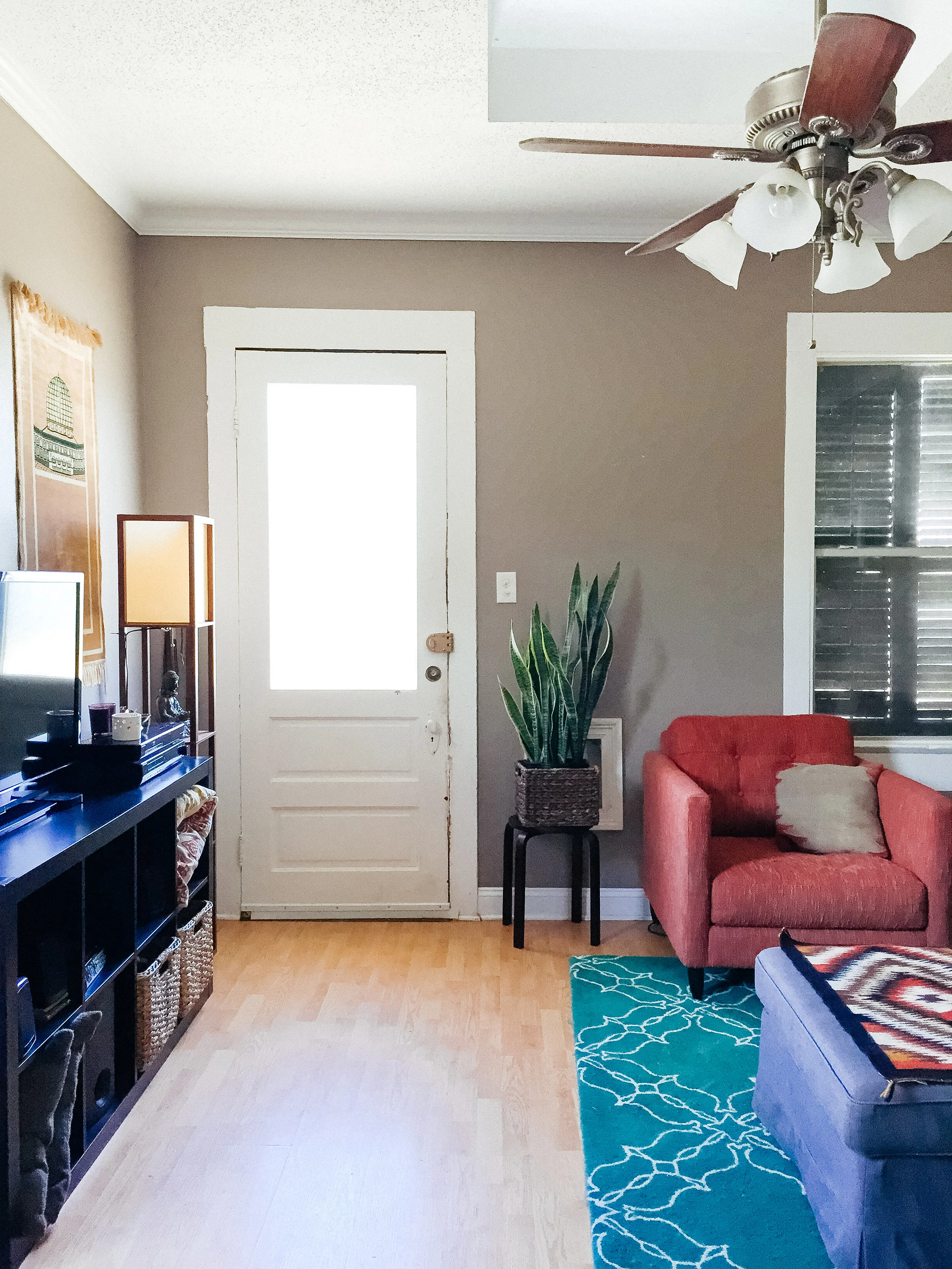 I focused on the living room because it's the only room with good lighting. The dining room is pitch black so I refuse to put my desk in there. I wanted the living room to be a multiFUNctional room. It's where we work, watch The Americans, hadvegame nights, nap, eat, and where guests sleep. It's a really fun room. Let's see some befores...