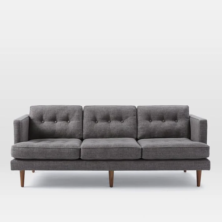 This is my 120 sq.ft. living room makeover I worked on for West Elm. Check out their blog for more tips! It's a shotgun style home. They're very popular in New Orleans and dates back to the early 1800s. They're basically a long and narrow, rectangular house. Ours had the living room in the front, then kitchen, followed by the dining room, bedroom, and with a bathroom in the back. The idea is that if you firea shotgun at the house, it would go through each room. It's a little scary sounding.