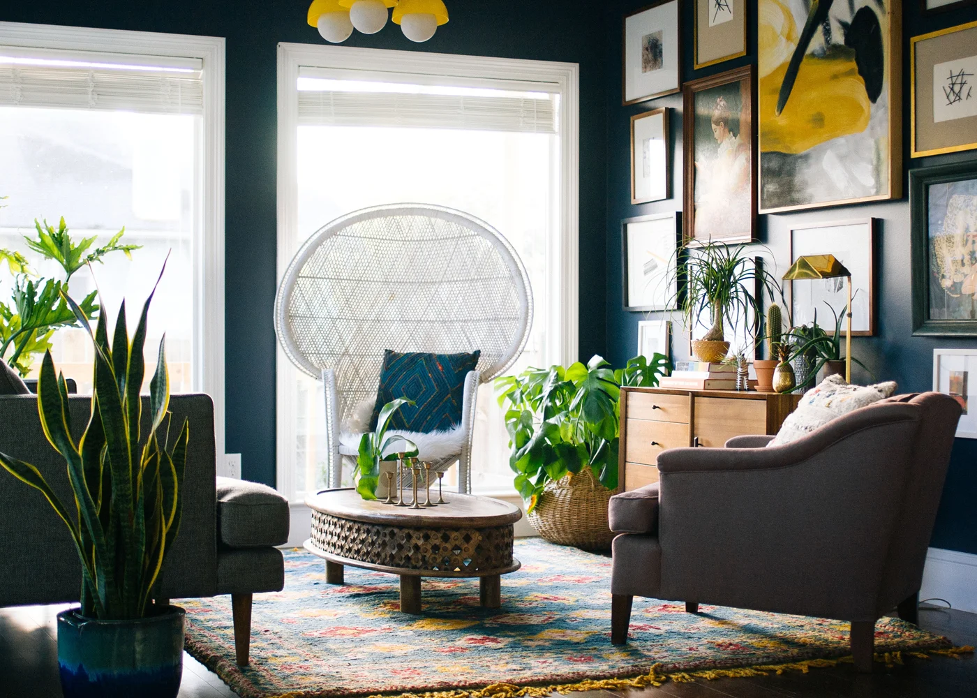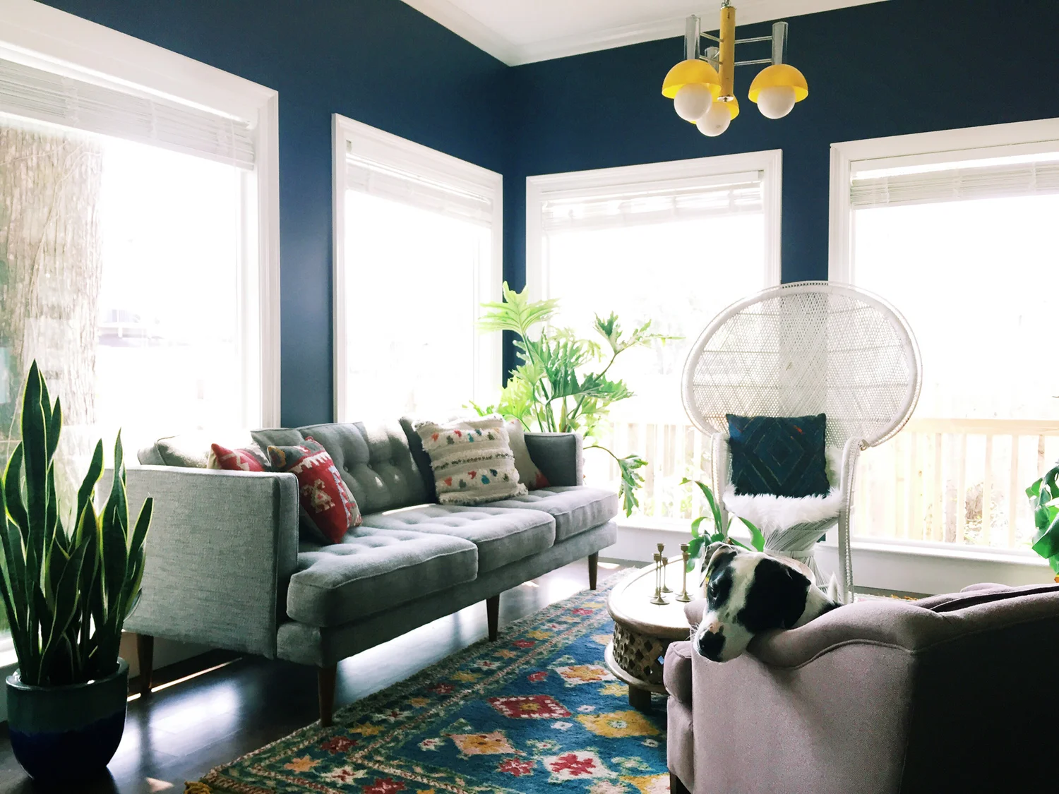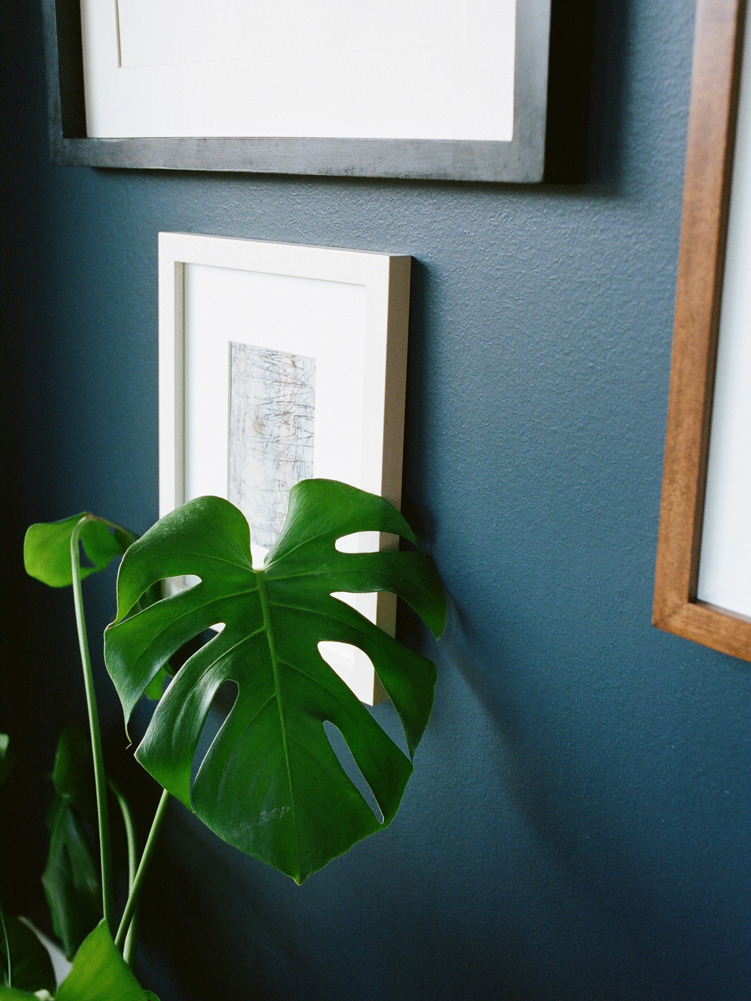 My client...oops, I mean, my heartmate and I finally agreed on a paint color for our study room. The walls were a pale grey before which gave it an airy vibe but it was a little bland. We wanted more contrast and richer tones. We picked navy, because navy is the new black! Initially, I wanted to go blush or a pistachio color but he vetoed those so we chose Valspar's royal navy. I usually prefer white walls when working with a small space but if you have lots of light pouring into a room, why not go darker. I was a little overwhelmed at first but after styling a gallery wall, it just completed the space. And I love it! Hanging art on the wall was a great way to add some color and break up that darkness. The gold leaf frames look so good with the navy! And I love my new abstract painting. It feels like something I would've painted myself. If you wanna know my trick to styling a gallery wall, hop on over to West Elm to see how easy it is!