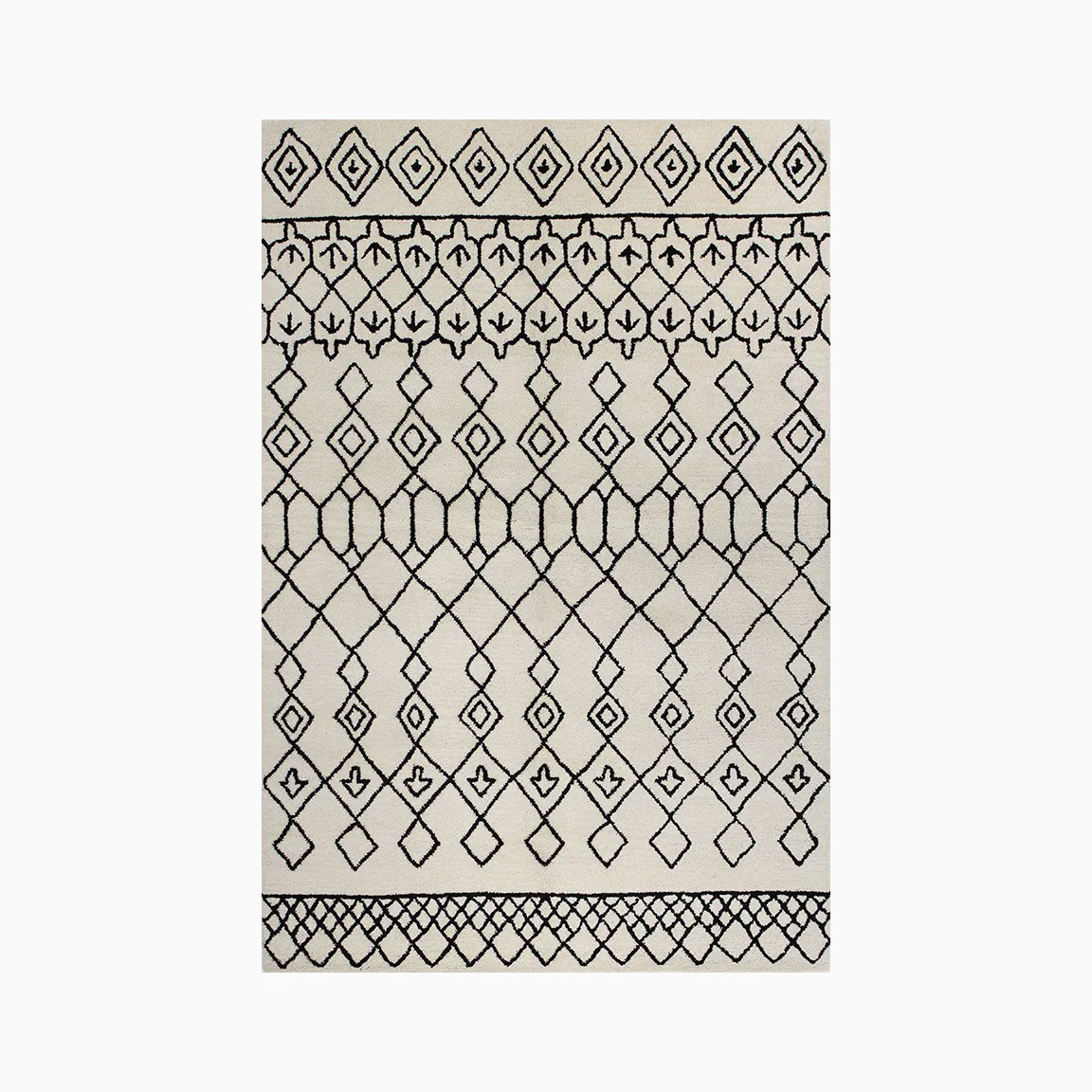 Beni Ourain rugs have been trending for awhile now but they're really classic. I don't think you can go wrong with them. The real ones typically cost thousands so these are a steal. They're soft and they make a space feel cozy. Why go for solid colored shag rugs when you can get these with some patterns on them that's way more interesting.