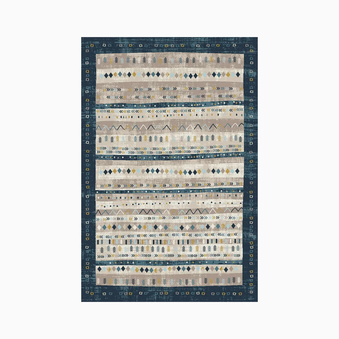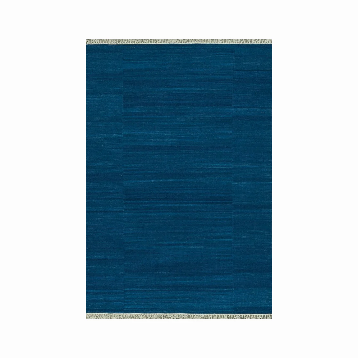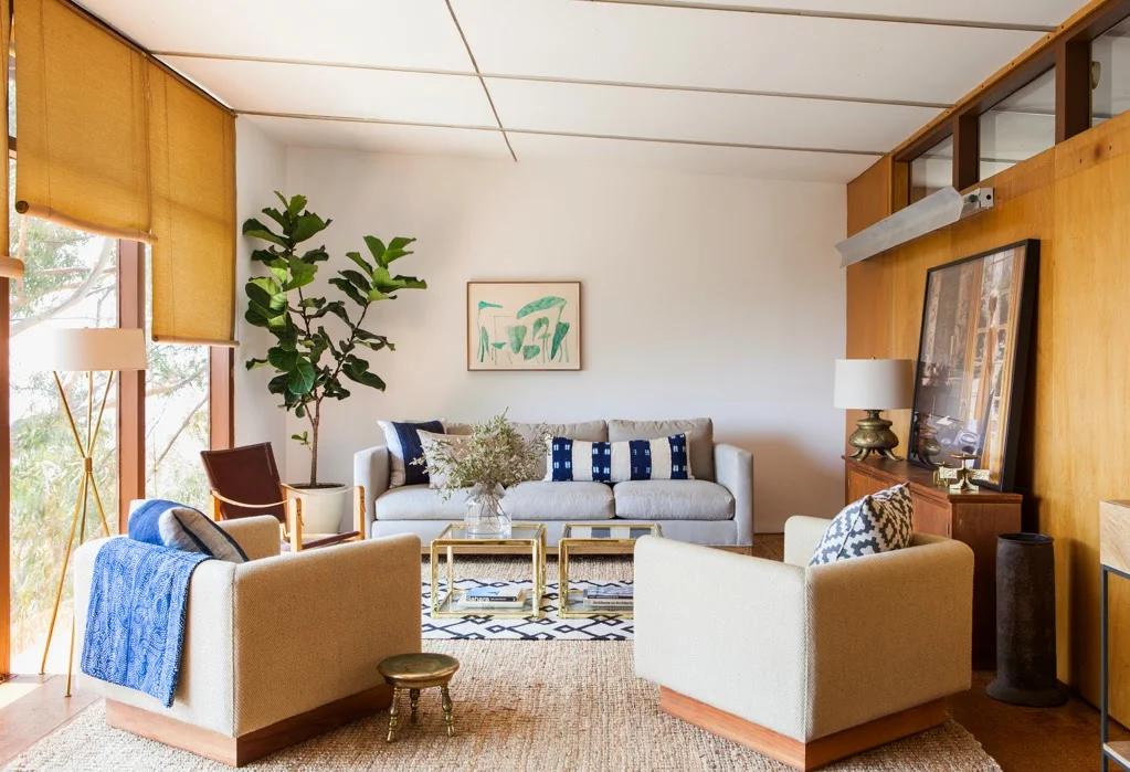 Blue rugs are excellent when you have lots of white walls and mid-century modern furniture. It compliments all that warm wood tones really beautifully.