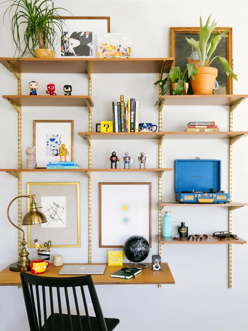 For this shoot, it's all about geek chic. Here are some fun ways I styled my home with these quirky pieces. This wall shelving unit has proven to be the most versatile thing, from styling plants to superhero mugs. Captain America as a bookend!