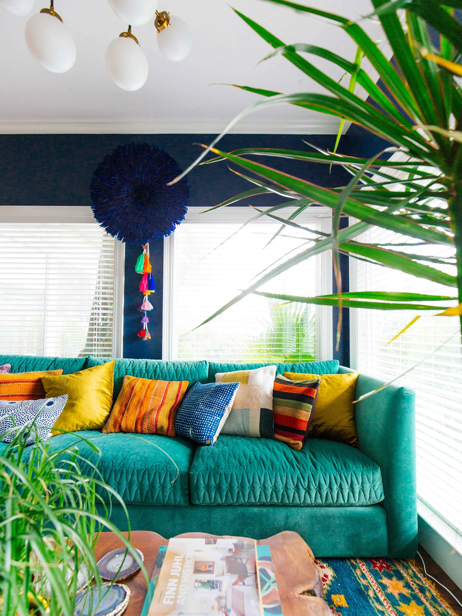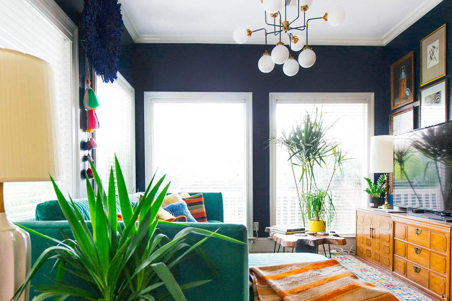 What do you think about the juju hat hanging on the wall with tassels attached? I thought it needed something there to balance the chandelier and gallery wall. But I didn't want more artworks hanging up there. And I really like how the roundness breaks up all those lines. I bought the juju hat from the sweet @sgardnerstyle.