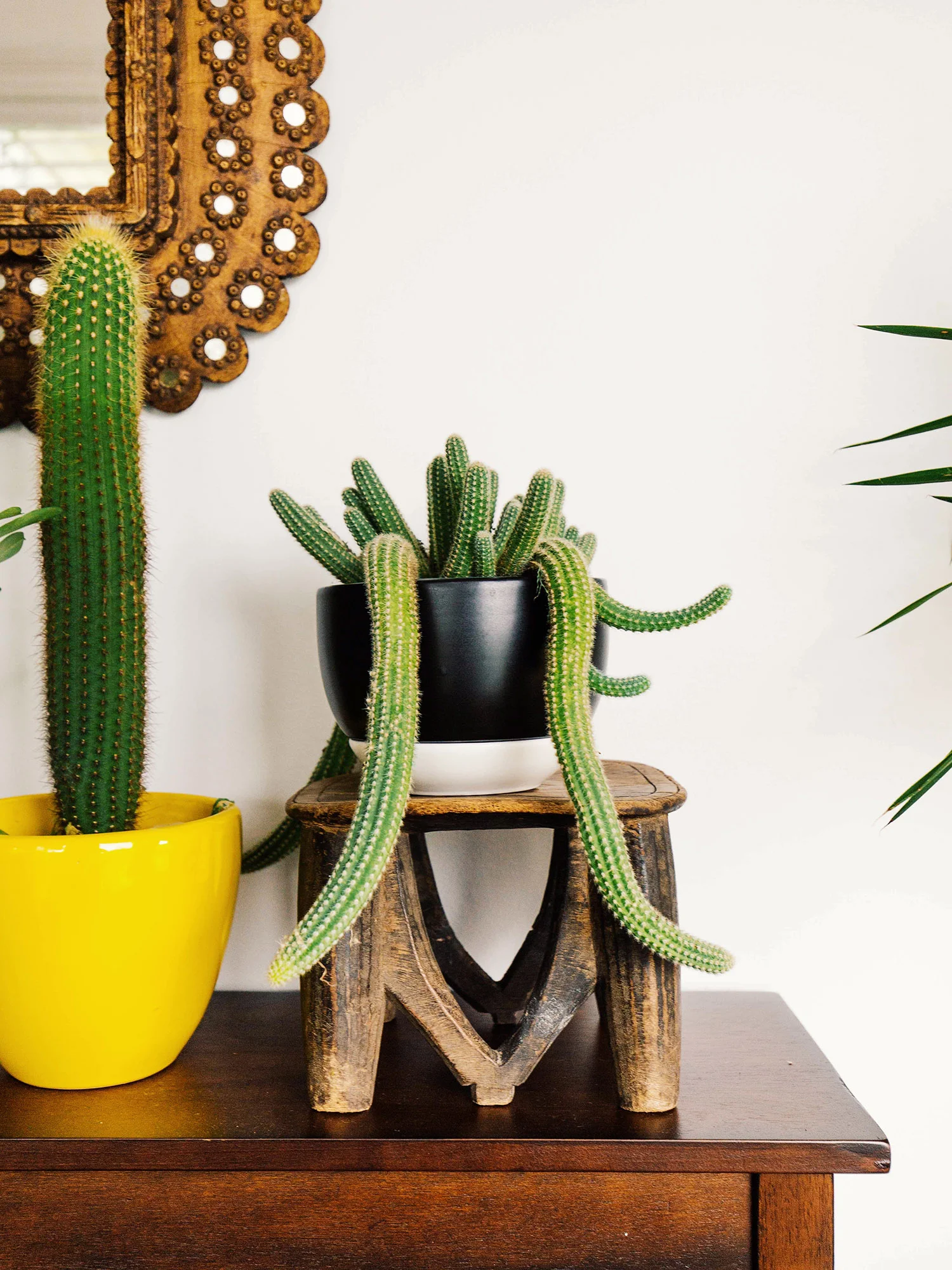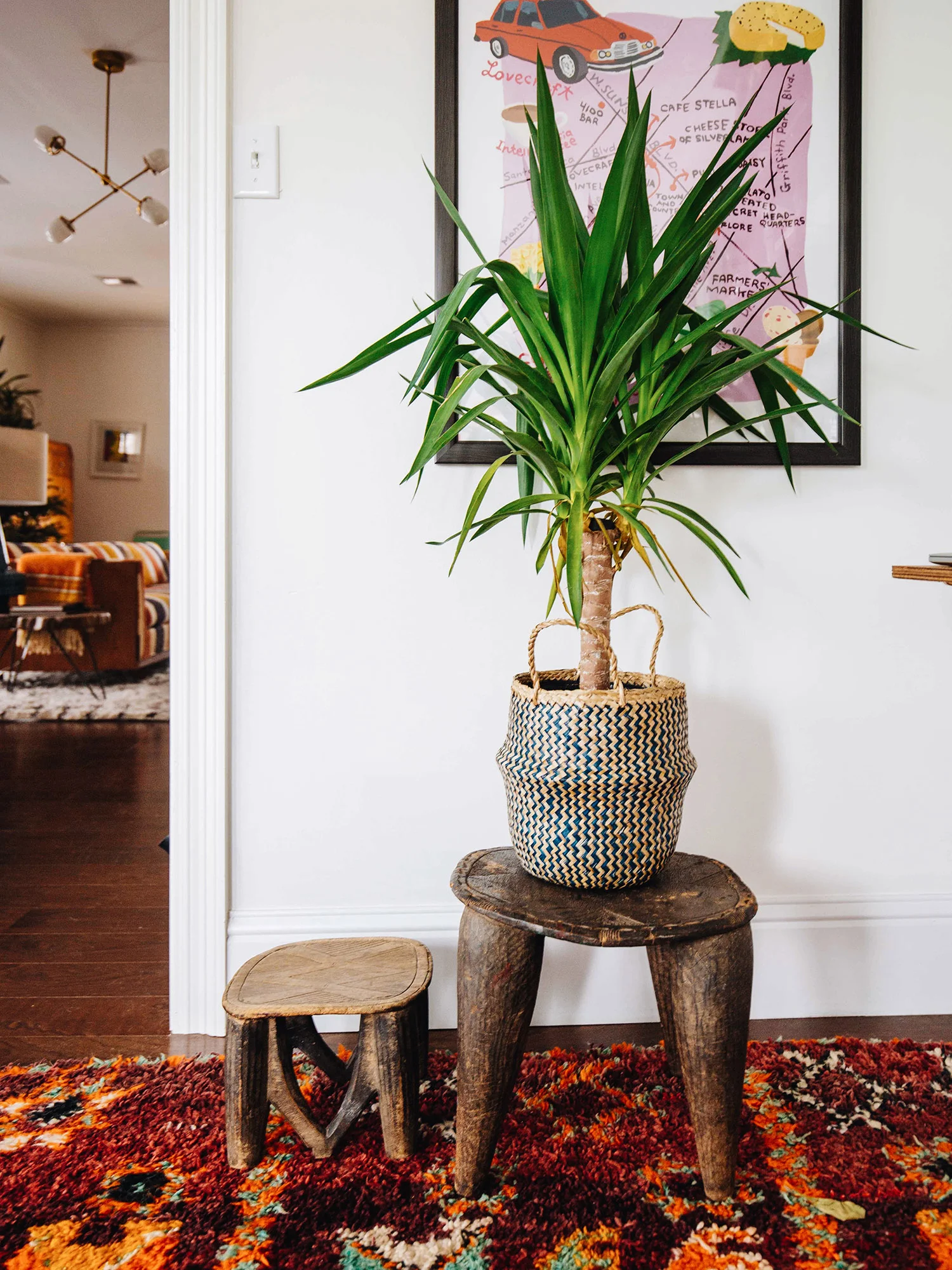 While we were in H-town, we cruised down Westheimer Road and I saw a huge sign that read BJ's Antiques. Questionable name, for sure, but I spotted a few African stools sitting outside their shop. I've seen these go for hundreds at the Rose Bowl flea market so I wasn't holding my breath when we pulled in. The guy who worked there was a hoot. He was telling me how these stools were over 200 years old and that they should be in a museum. I was like, great, they're gonna be $$$. But to my surprise, they were $75 each! YAAAS! I took two and boom, now we got some Nupe stools in the house! They work great as plant stands or just by itself.