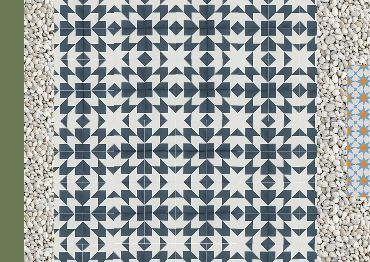 The back yard looks pretty bleak right now but wait til we lay down these gorgeous tiles (as soon as they get here)! We also made a last minute decision to add tiles on the stairs that leads to the guest house. It's gonna be lit! What do you think about these Moroccan blue and orange tiles? They also have a star shape to tie in with the other tiles. So I'm definitely leaning towards the calke green paint for the fence which we're gonna paint next week!
