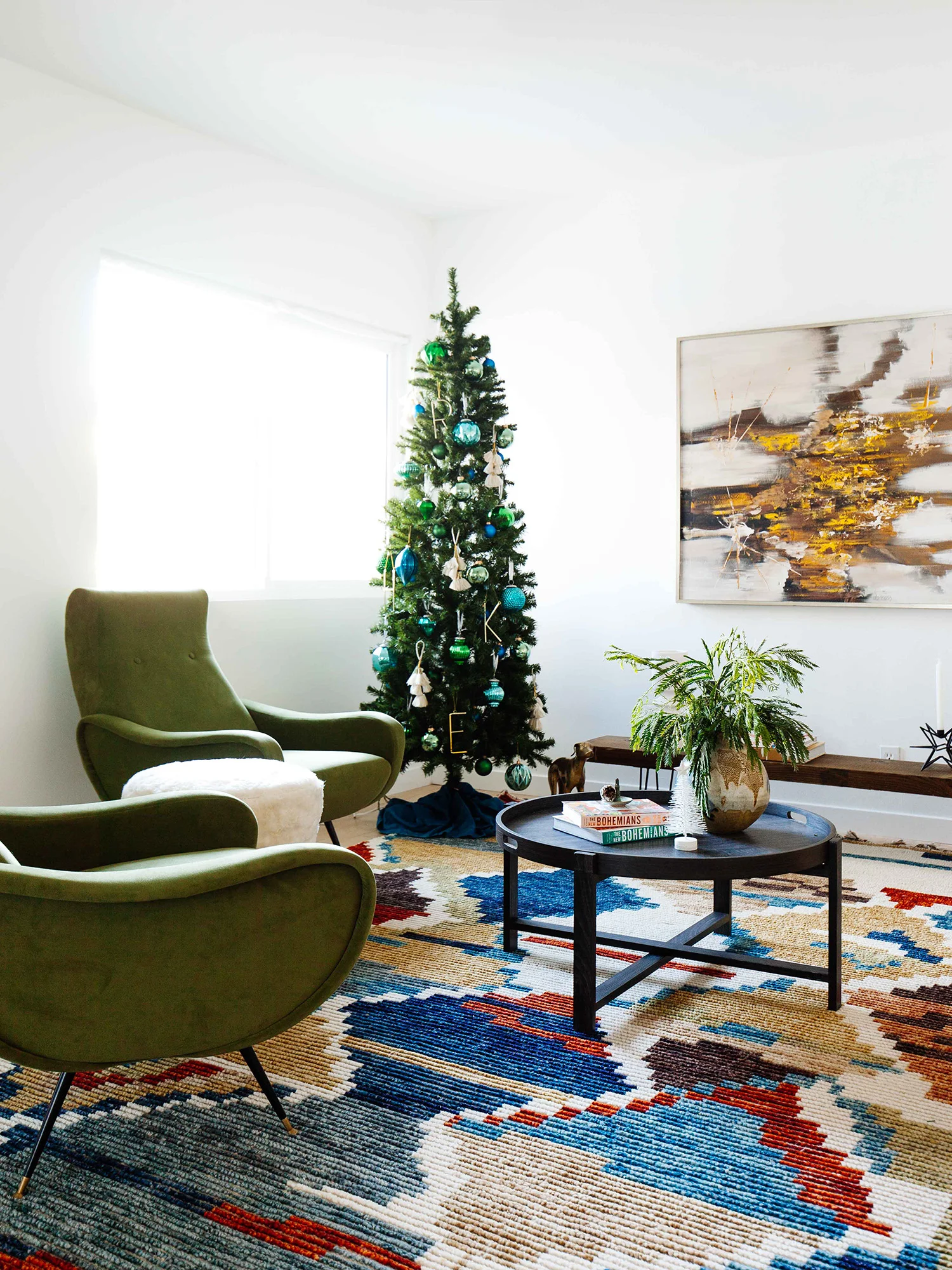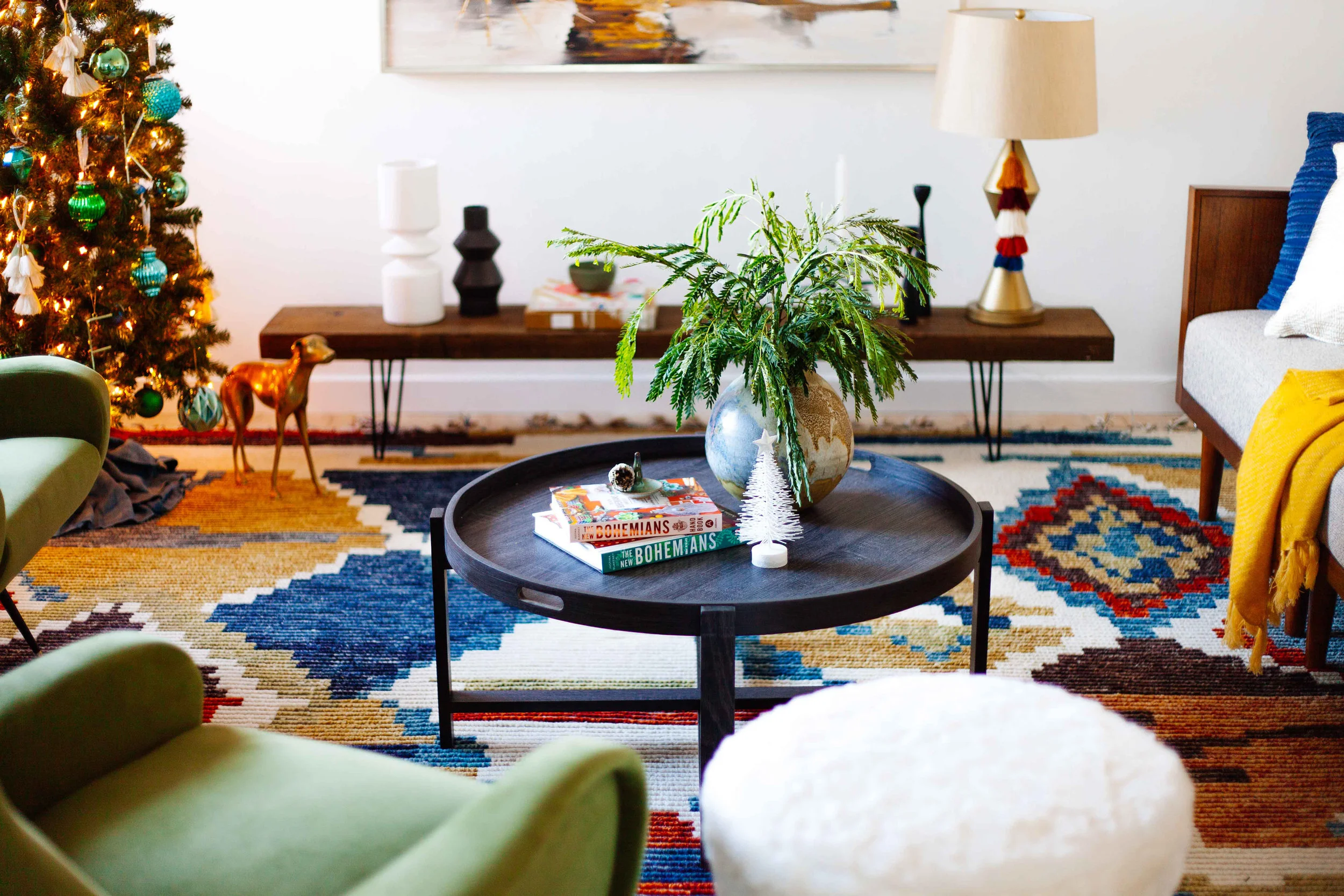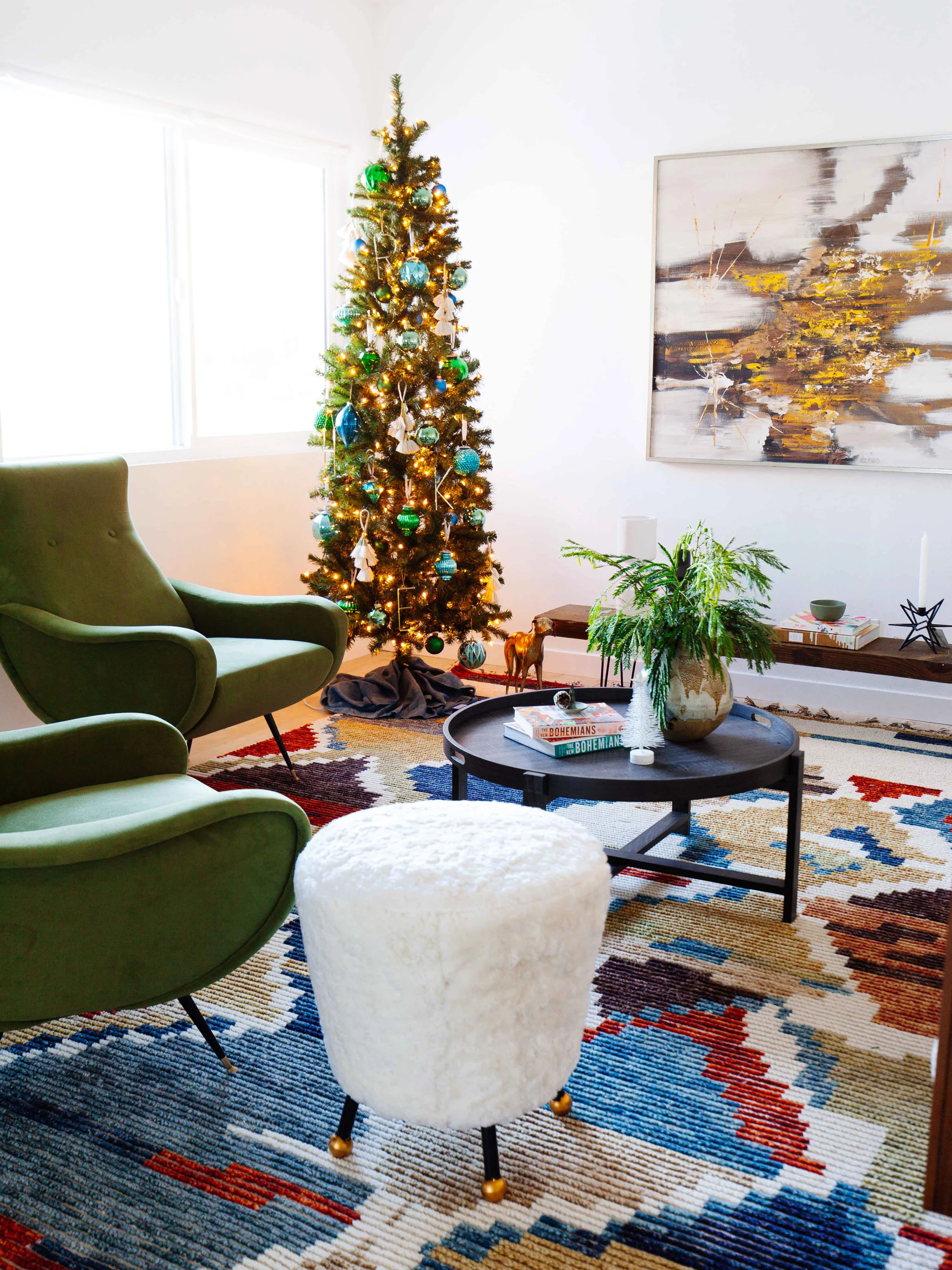 I’ve never really been the type to go ham on Christmas décor. Just like my standard design philosophy, I like to keep the big pieces in a room relatively neutral and then spice things up with fun accessories that capture my bohemian style. Overstock is pretty much a one-stop-shop so I was able to get everything I needed (yes, including the tree!). What’s even better is that they are offering a ton of great deals every day leading up to the holidays beyond their already low prices, plus free shipping on orders over $45! It’s all about the free shipping. I shop using Overstock’s AR app, which uses augmented reality to see what pieces would look like in my actual space. It’s genius.