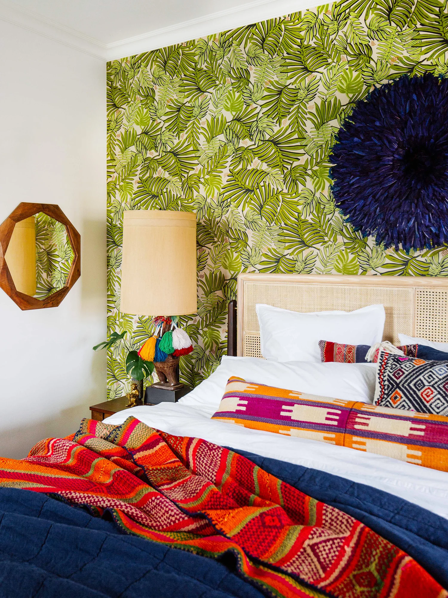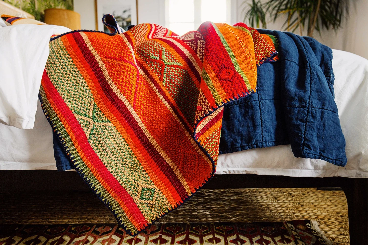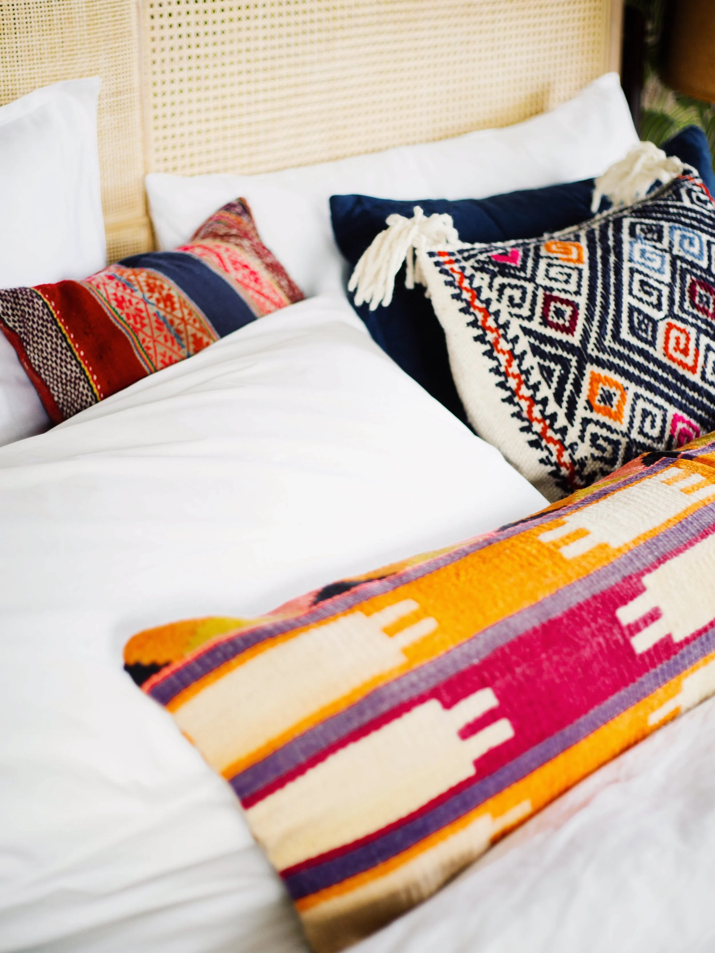 Let's start with the minimal look. This is so easy to throw together. It's basic without being baaasic. You know what I mean? Just place two king size pillows down. Add some interest by tossing a lumbar pillow in front, like this one from Parachute (in collaboration with The Citizenry). Lumbar pillows are the best! They seriously complete the whole look. And don't forget to layer a fun, patternful blanket at the end of the bed. I like to cover a third of it.