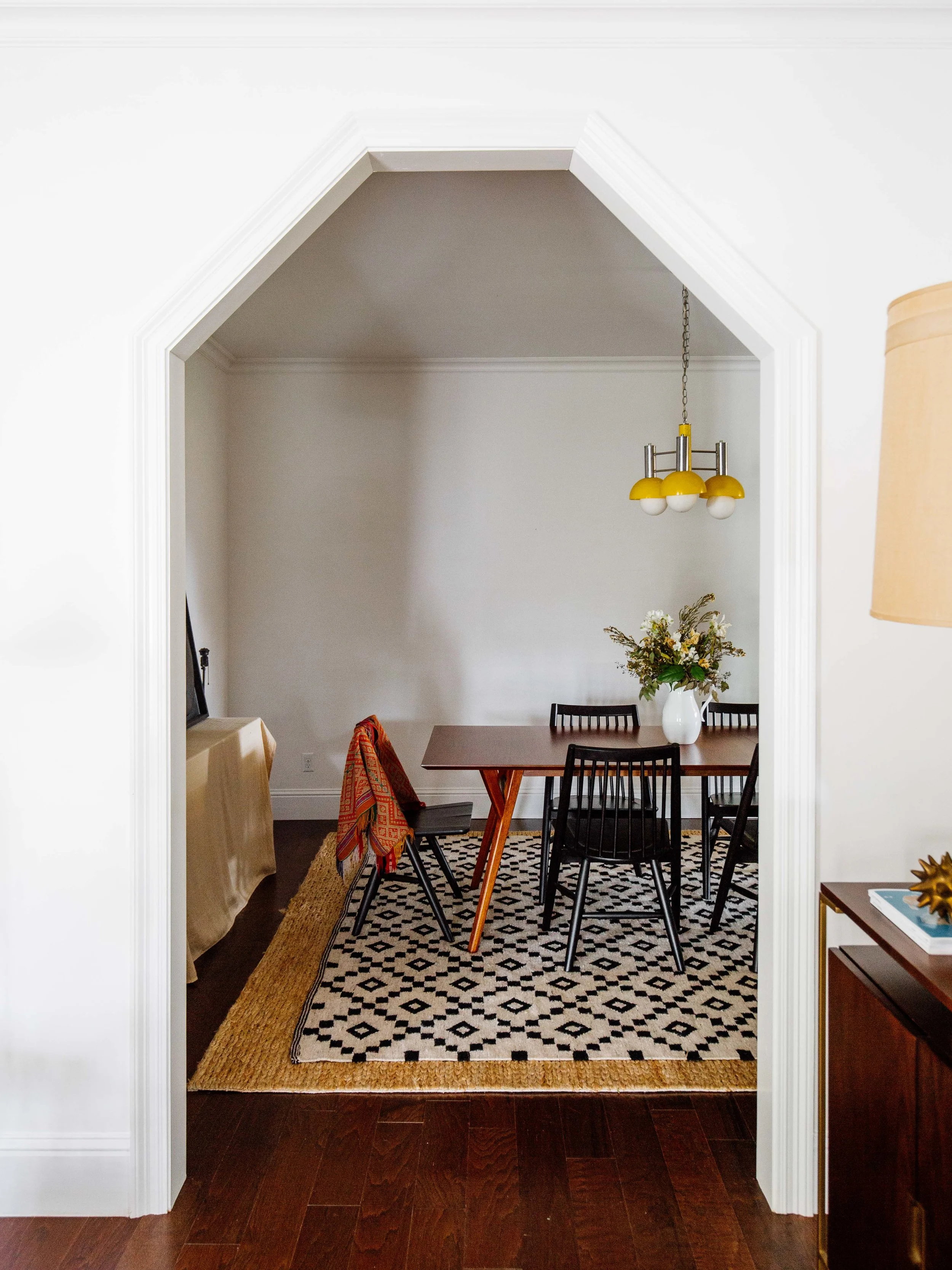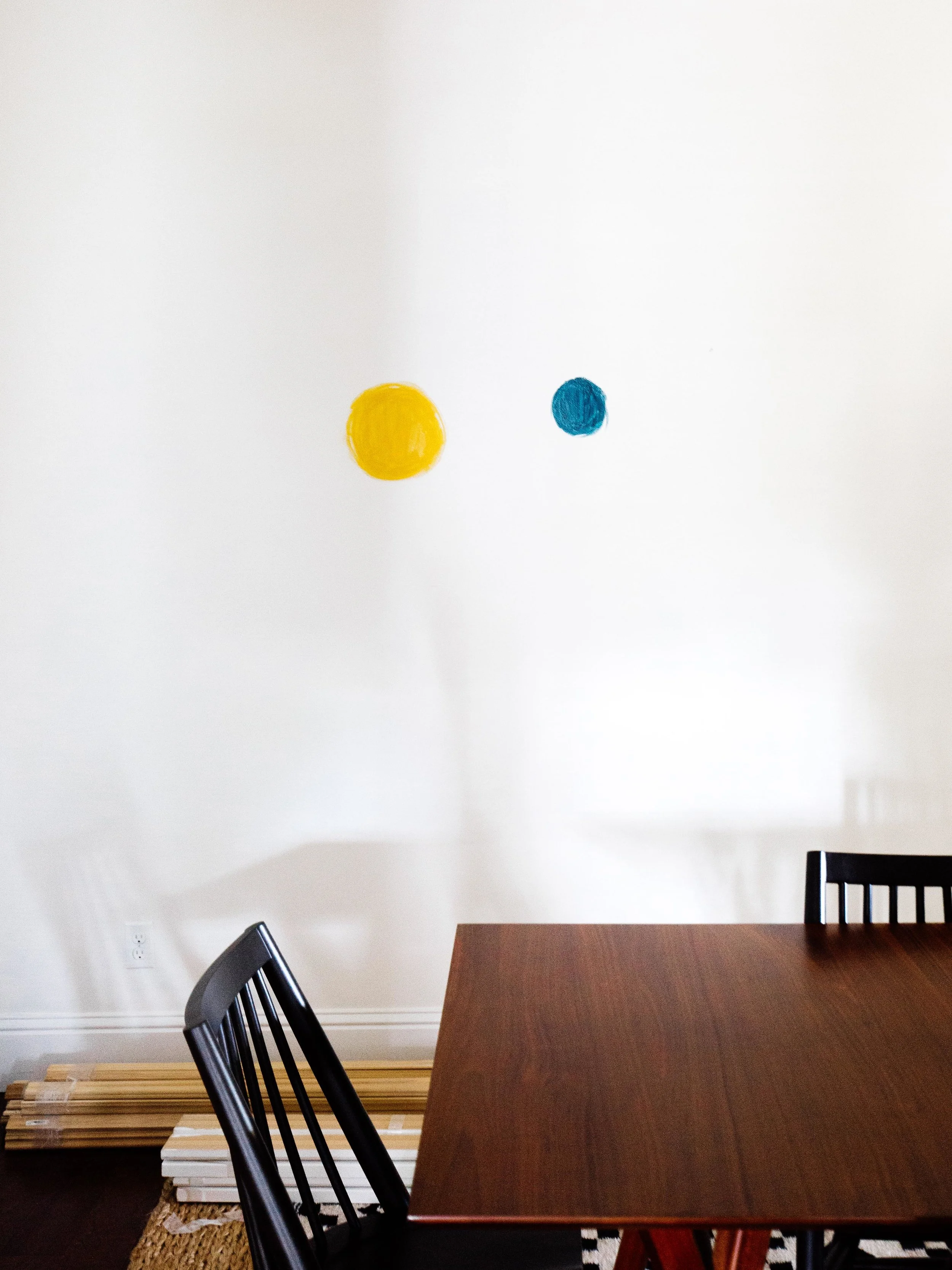 Here's the dining room situation at the moment. The walls are way too bare so I'm adding a chair rail and picture frame moulding from Metrie. It's definitely going to add depth and interest to the walls. I'm really excited! And it'll go great with that weird polygon frame, too.