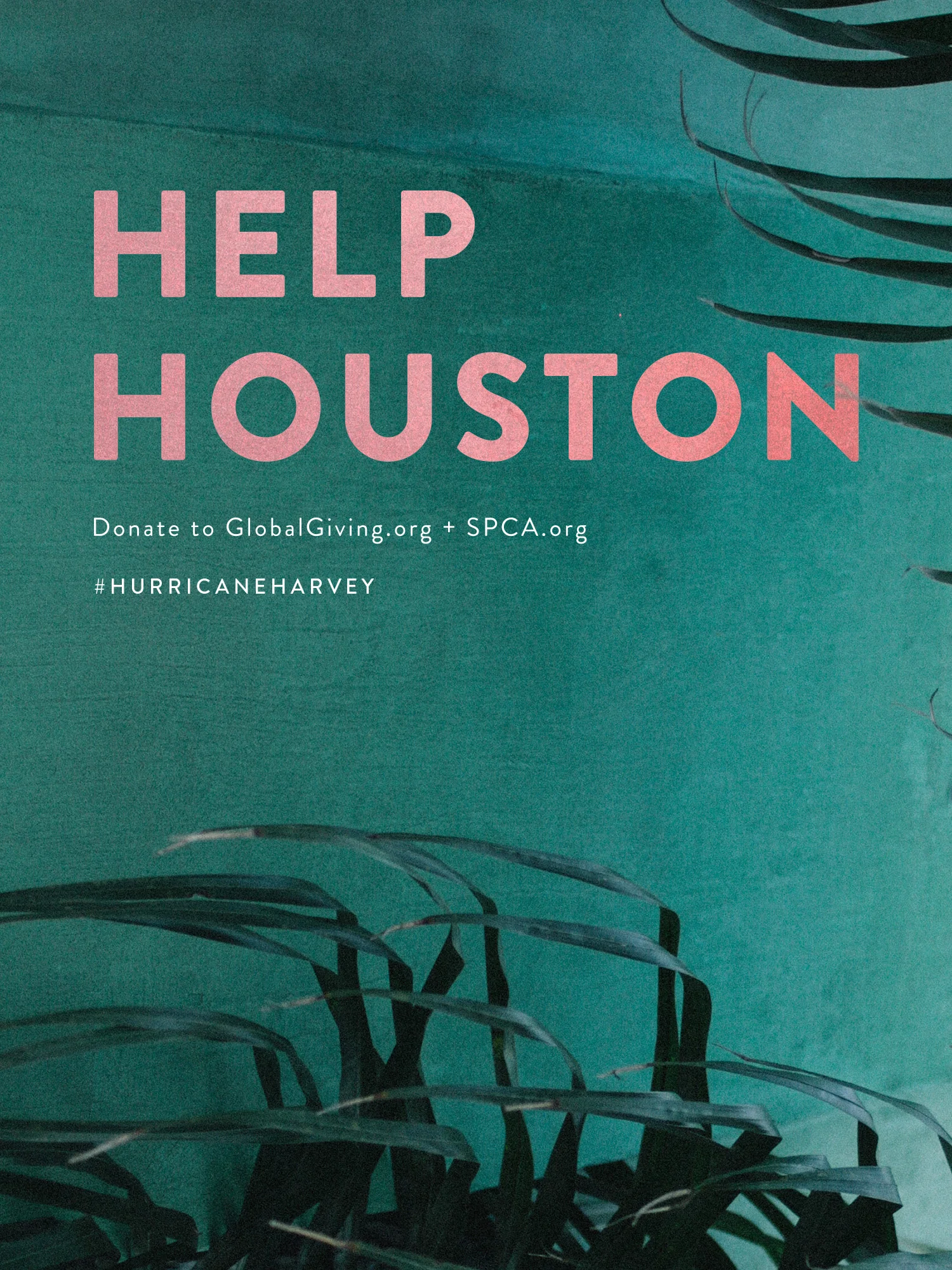 Please help Houston and those (including animals) affected by Hurricane Harvey. We picked two organizations to donate to: Global Giving and SPCA Texas. We're all in this together.