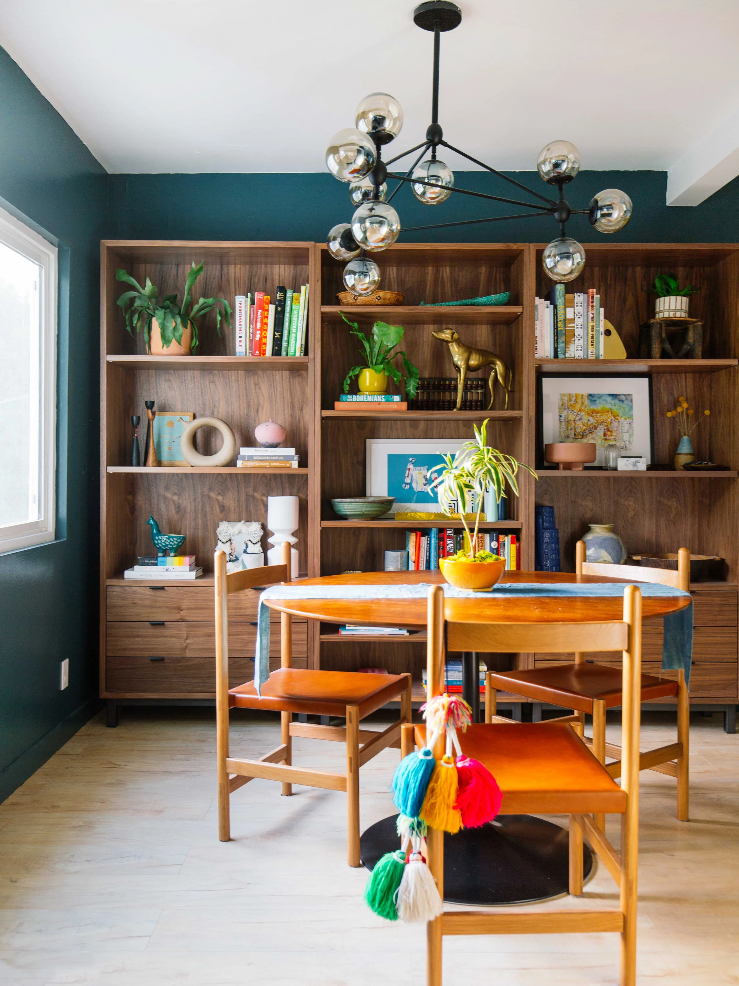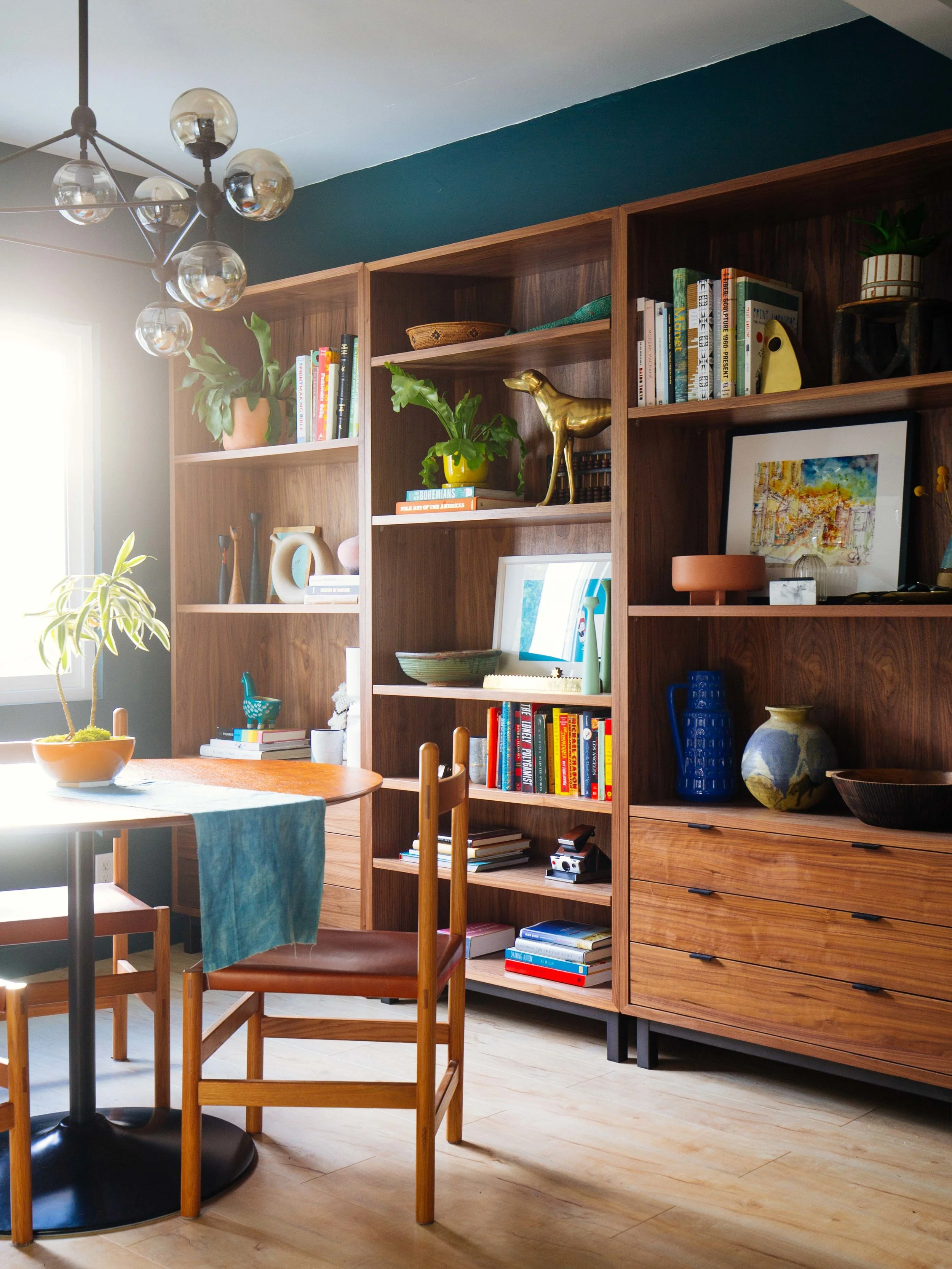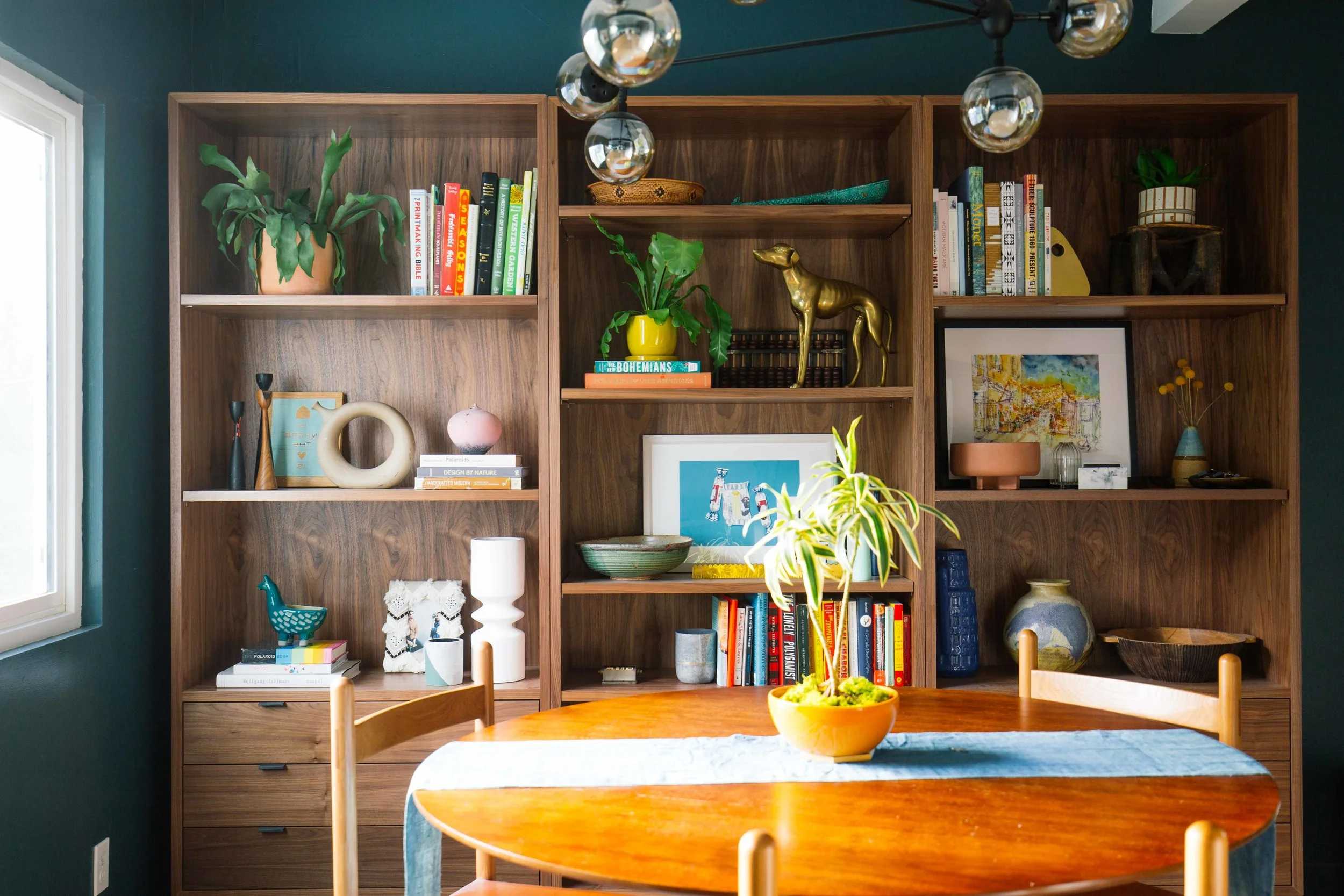 Now, on to our dining room. We chose Copenhagen Wall Unit from Room & Board to give it that built-in bookcase feel. And it totally transforms the space and makes it feel really cozy. I can finally display all my favorite things. That’s what’s great about Room & Board. You can customize your home with all their classic pieces. And now our cookie cutter home feels more custom made for us!
