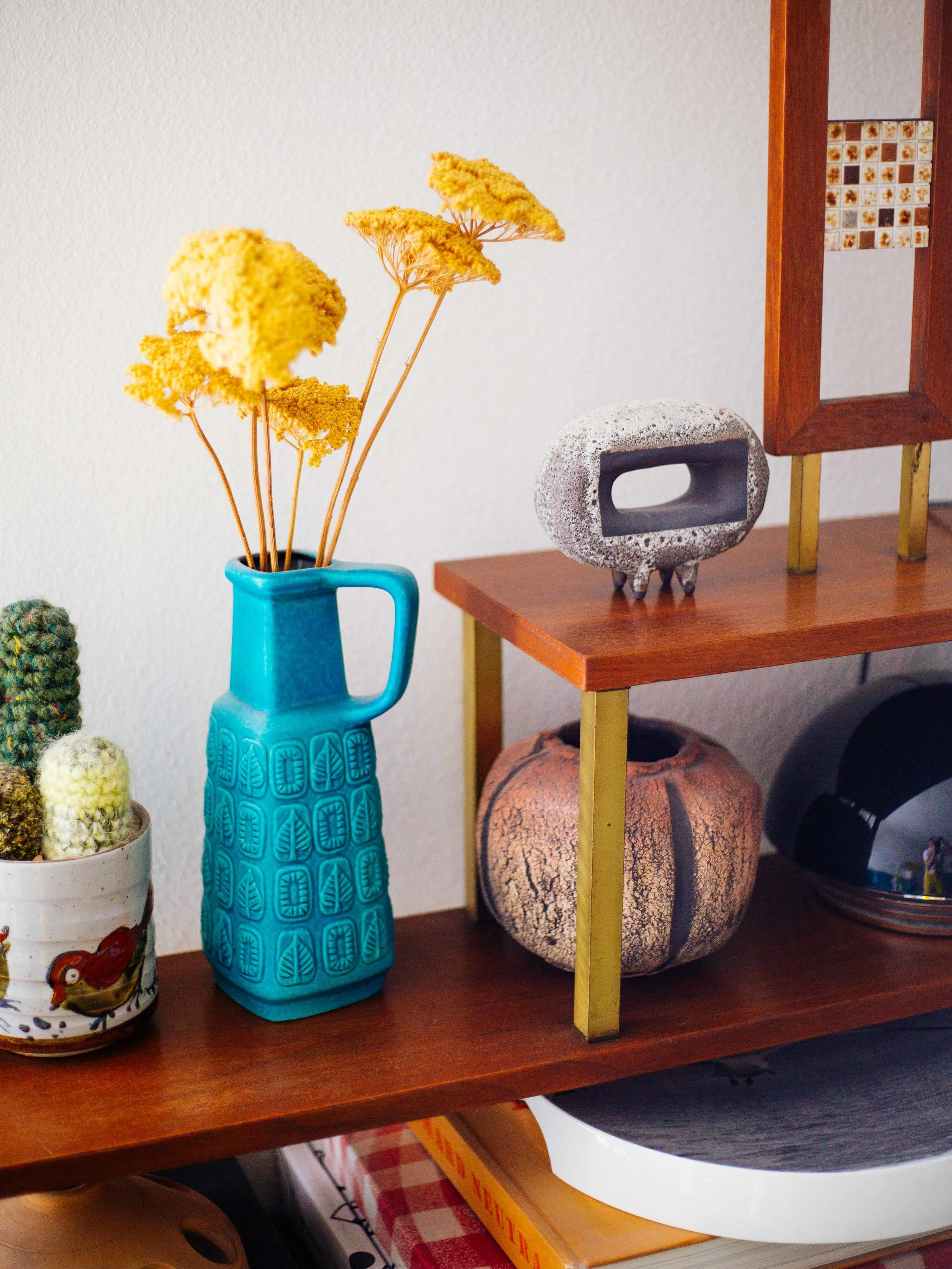 Hello my vintage vultures! You guys are in for a treat today. Welcome to Jonathan Lo of Happy Mundane's home tour! Jon is the absolute kween of color blocking and vintage vibes. I've met Jon almost ten years ago from blogging. He's a design extraordinaire. How amazing is his citrusy downstairs bedroom? It's giving me modern tiki vibes for sure. And don't even get me started with that bright woven wall hanging. Here, you have a cookie cutter home and with carpet (gasp!), but there is no shortage of bright ideas to make your home fun and unique. Jon has a way of creating vignettes that's so thoughtful, it looks like art! Anywahoos, I'll let him take it away from here!