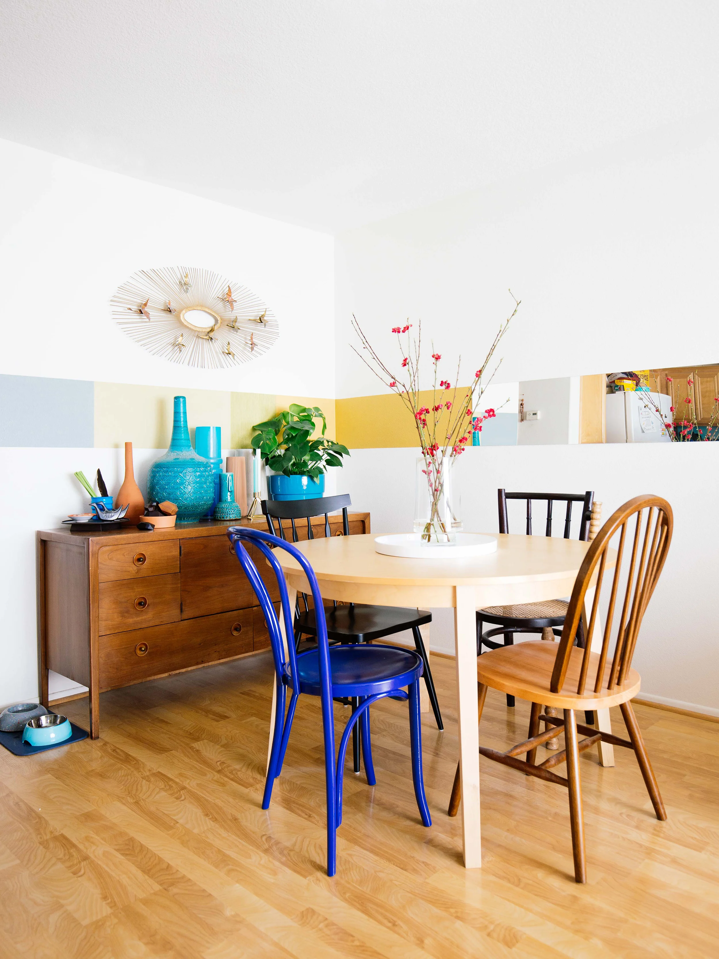 Color blocking is an easy way to define spaces in a room, not to mention also giving graphic impact. What’s great is you can just repaint right over it if you get bored with a color and not have to bother with having to redo the whole room.