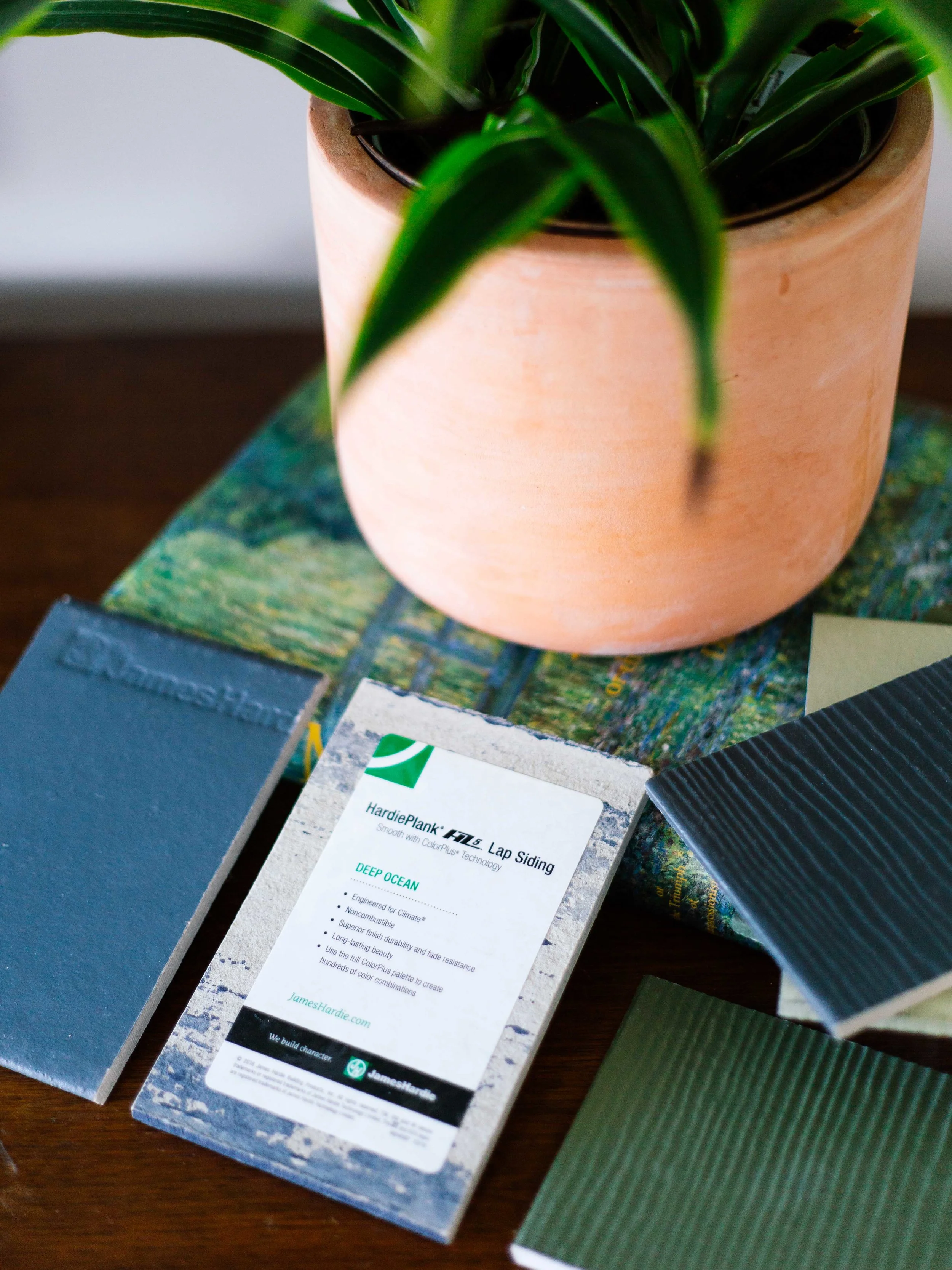 You can order free samples to feel them out. I ordered both smooth and cedar mill HardiePlank® lap siding in blue and green tones. We’re considering their navy shade called Ocean Blue. And given the brand’s ColorPlus® technology where they bake on multiple coats of paint in a controlled environment, we know it’s going to look rich and vibrant — plus it’s going to stand up to New Orleans’ unpredictable weather.