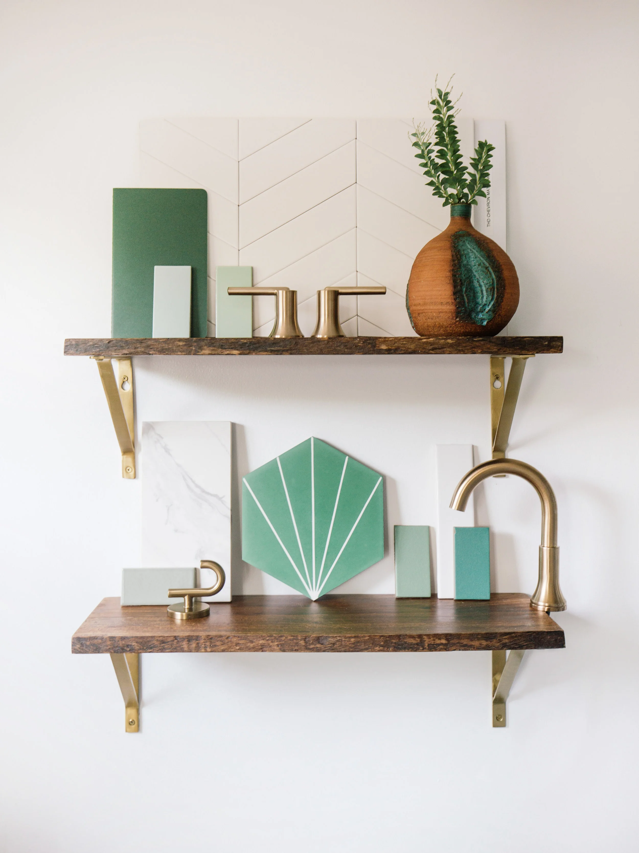 You already know I love me some color, and that’s something that’s been sorely missing. One of the ways we plan to inject a little more life is by swapping out the floor and shower tiles with gorgeous, green pattern cement tiles that simultaneously remind me of flowing water and one of my favorite type of plants (acacia). I always look to mother nature for some design inspiration.