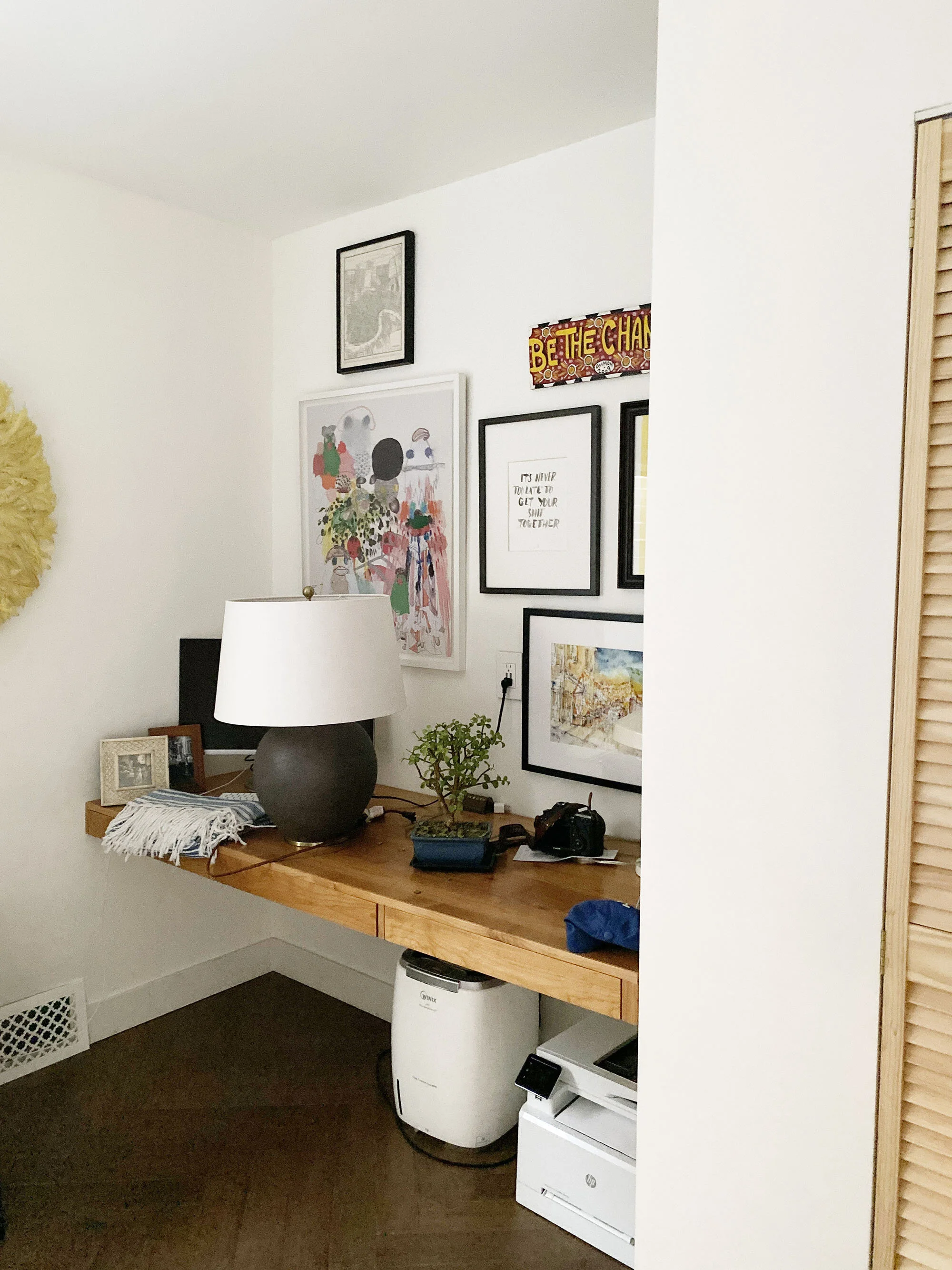 I can’t believe we’re one week away from the reveal of our One Room Challenge! We are terribly behind because we had some family stuff turn up and they’re staying with me so we had to temporarily style this room up for them. It’s been tricky. We’re also in Bangkok for vacation for a week. As soon as we get back this weekend, it’s crunch time! Here’s where we stand. We moved the bookcases in here and I’m loving the library vibes already. Wallpaper from Milton & King arrived so I’ll be installing it on Monday. It was a last minute design change and I’m excited to see how it turns out! We updated the switchplates with Legrand wifi dimmer switches. We loved them in our New Orleans house so we we’re using them again. And here’s a peek of the desk area. And that’s it for now!