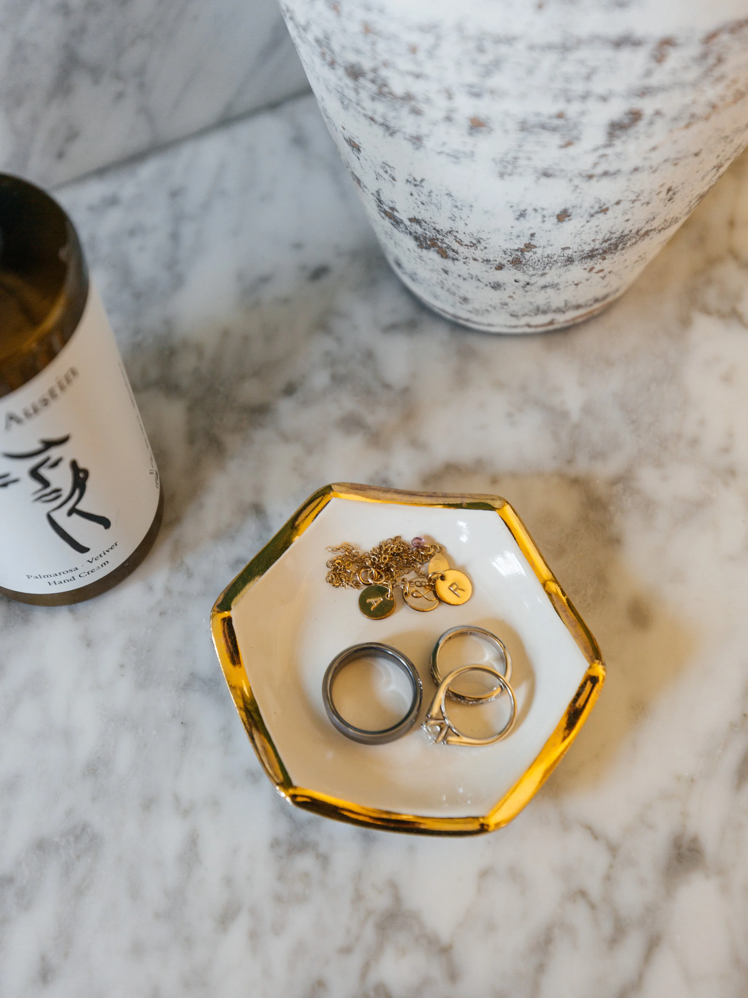 First we thought a lot about the flow and layout. The space is 96 inches x 104 inches. We moved the toilet away from the door and into the far back corner. We made sure we had a standard minimum of 30 inches for the toilet area. I think it ended being about 32 inches. The fabulous double vanity shifted over to the right wall. I love how veiny the carrara marble top is. We did swap out the cabinet pulls for gold ones. The tub stayed in the same location but now it’s more functional with a showerhead and handshower. Their old standing shower is gone and replaced with a new closet for lots of storage space. Everything just flows better now. It actually feels bigger and is way more functional.