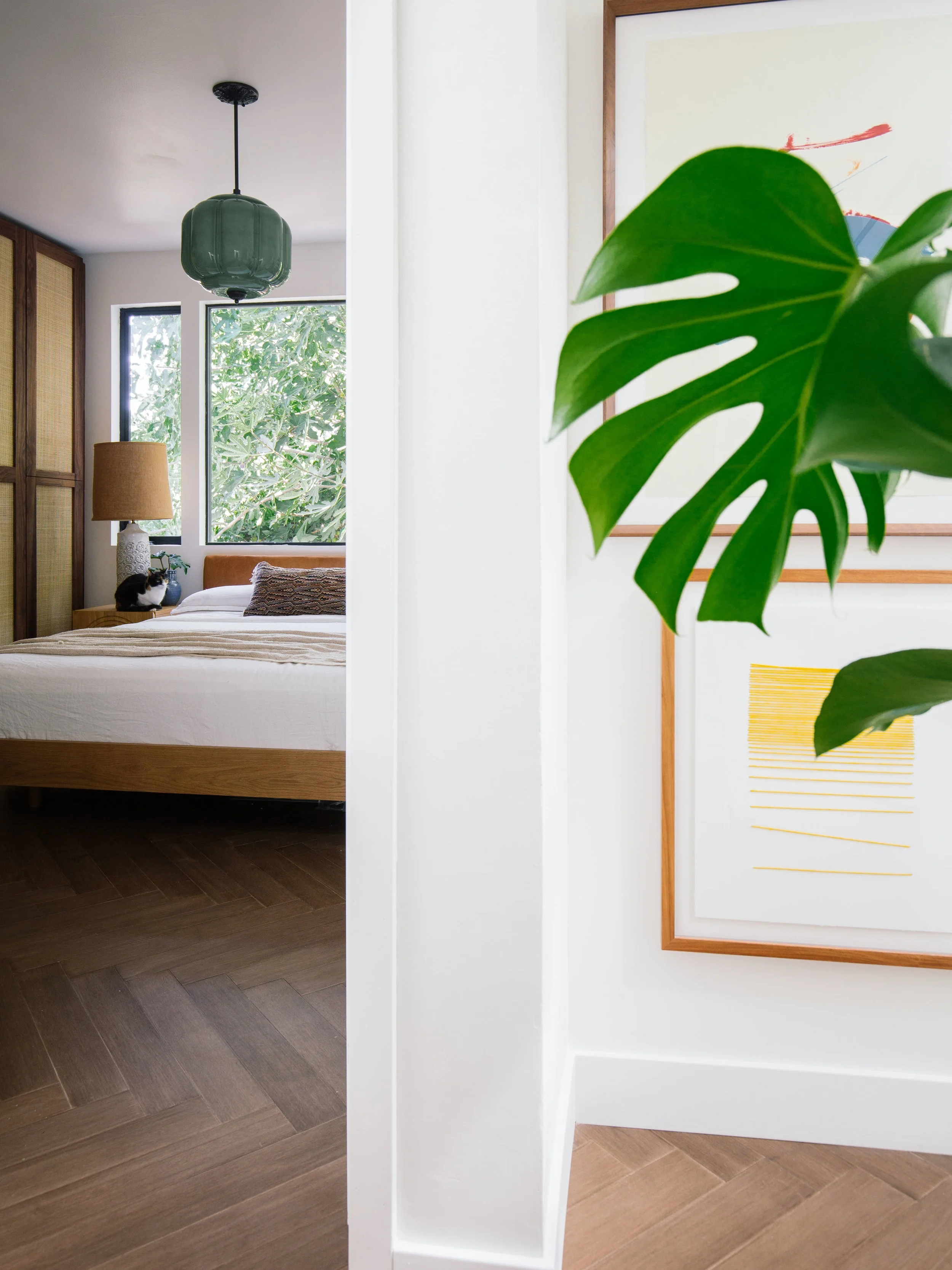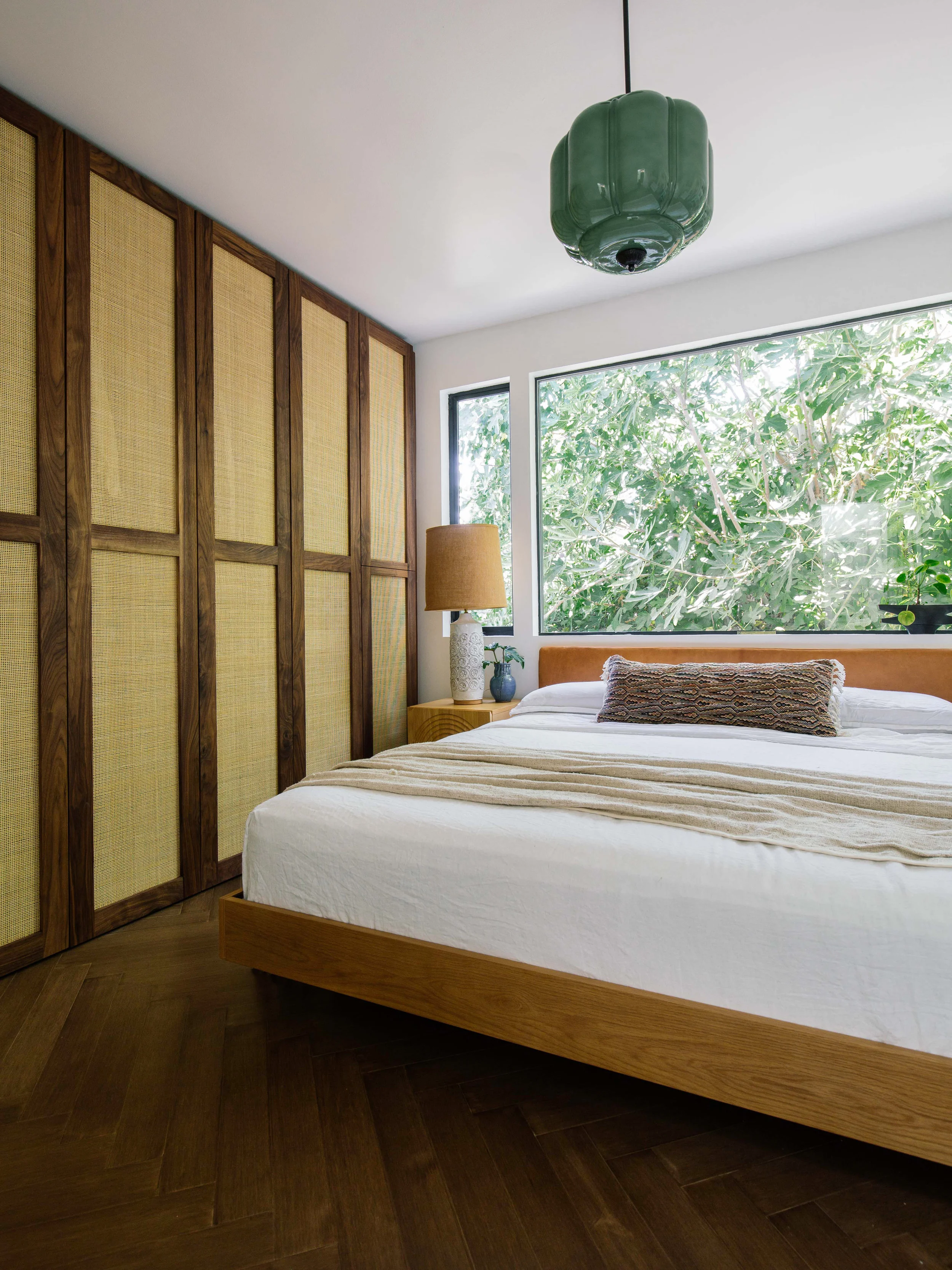 And bam! Here’s a peek of our new master bedroom. It’s not completely done because the bathroom is still a work in progress, but we couldn’t wait to sleep in here. The herringbone wood floors add so much depth and dimension to the space. Like, do we even need a rug anymore? Ha! We also put in new windows because I mean, just look at that massive fig tree! I can literally open the side casement windows and pick a fig to snack on. And we had cane doors custom made for us from our friend Patrick of Alder and Oil.