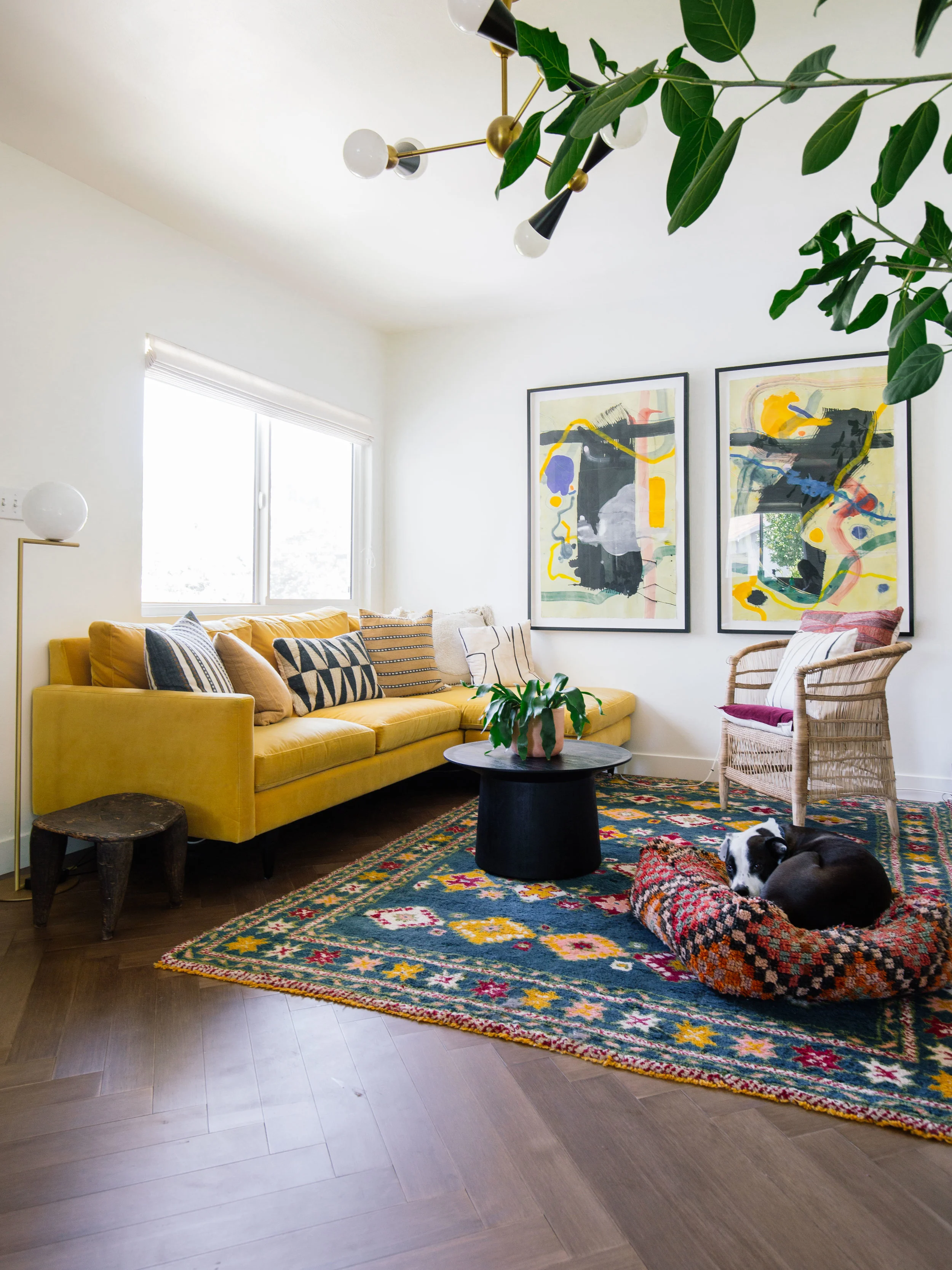 Herringbone floors are a bit trickier than the traditional install. I got about 10 estimates and the numbers were all over the place. We’re only installing about 1075 sqft and the estimates ranged from $3500 to $30,000. How crazy is that? After a couple hiccups (I had to fire two contractors), we ended up with the $3500 quote. This included demo old floors, install new floors, and even baseboards. We ordered 1200 sqft of bamboo floors and five 5-gallons of glue. We still had extra leftovers too. It took seven days to complete and the whole house was turned upside down. It was like starting over and moving into a new home! It was worth it though. You ready for the transformation?!