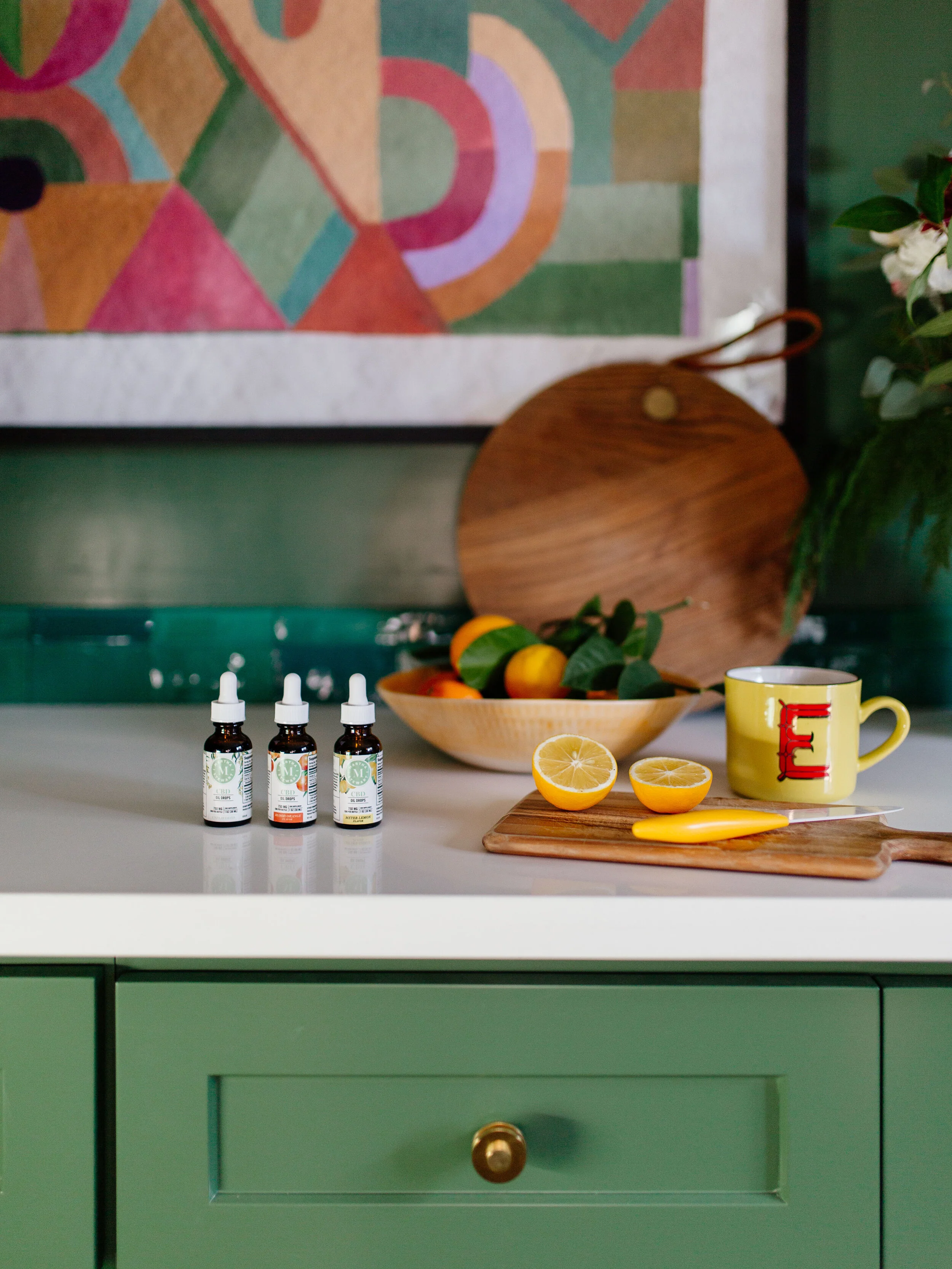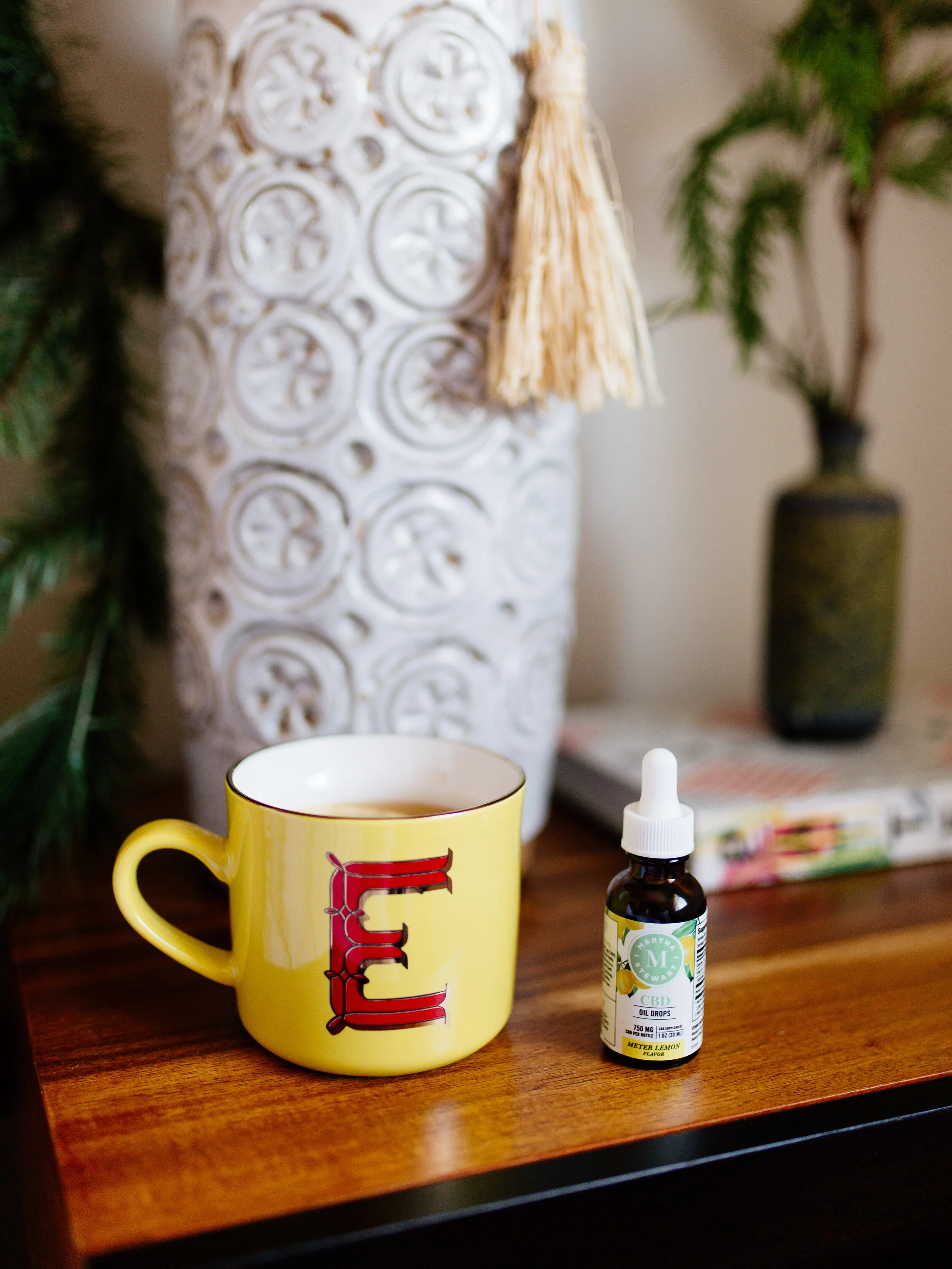 And while they’re staying in our home, they can try out Martha’s CBD. The gourmet flavors go perfectly with a few of my favorite colors: citrus hues! The bedroom is a sunny yellow, so I made sure to stock the nightstand with some Meyer Lemon CBD oil (the other flavors include Blood Orange or unflavored). Keeping them there is a reminder to wind down before bed. I even like to put a few drops in an evening beverage, like a dirty martini or a cup of hot tea. Then I made sure to leave some of the gummies under the Christmas tree as a little take home gift!