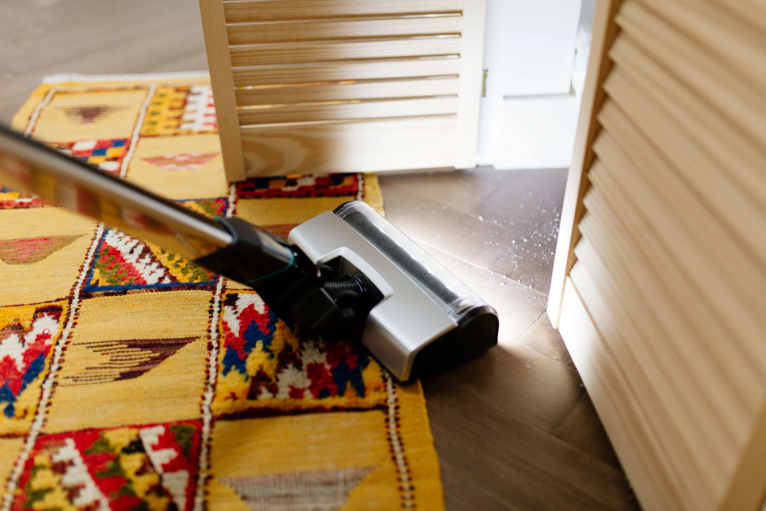 I start going over hardwood floors first, especially over all the litter that Verbena tends to track all over the house. And then I move on to all my rugs. Rugs are great if you have hardwood floors because it catches all the hair so it’s not twirling around the house like tumbleweeds. What’s great about this vacuum is that it has a tangle-free brush roll.