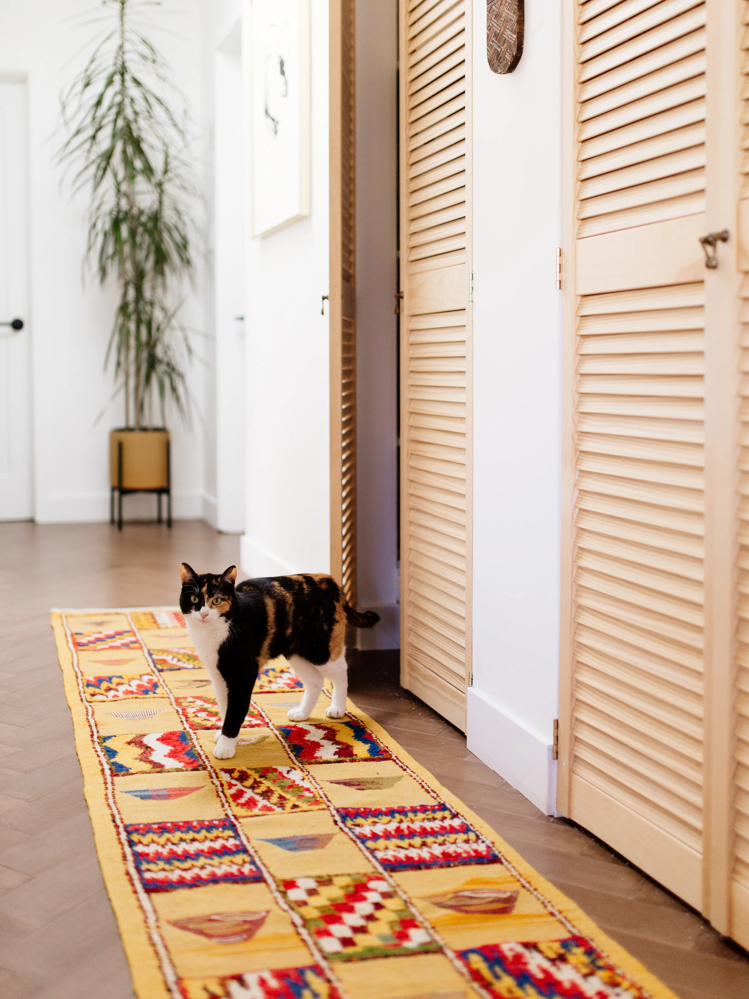 Now that I have a kitty, I’ve noticed that Verbena loves to hide under sofas, bed frames, or anything that has legs, which means more hair collection. I’ve started to choose furniture that doesn’t have legs or are low profile, so it doesn’t trap more pet hair under it.