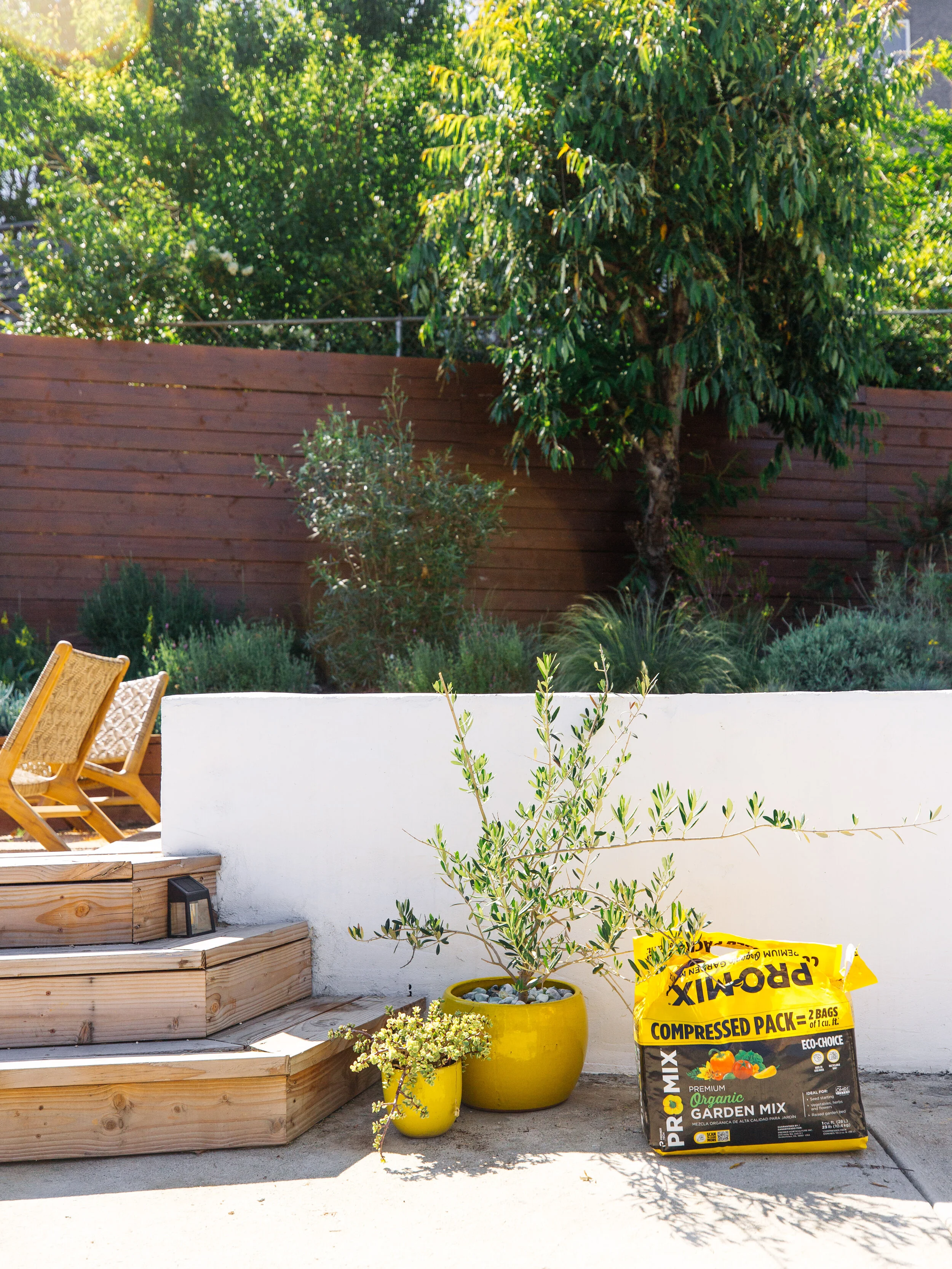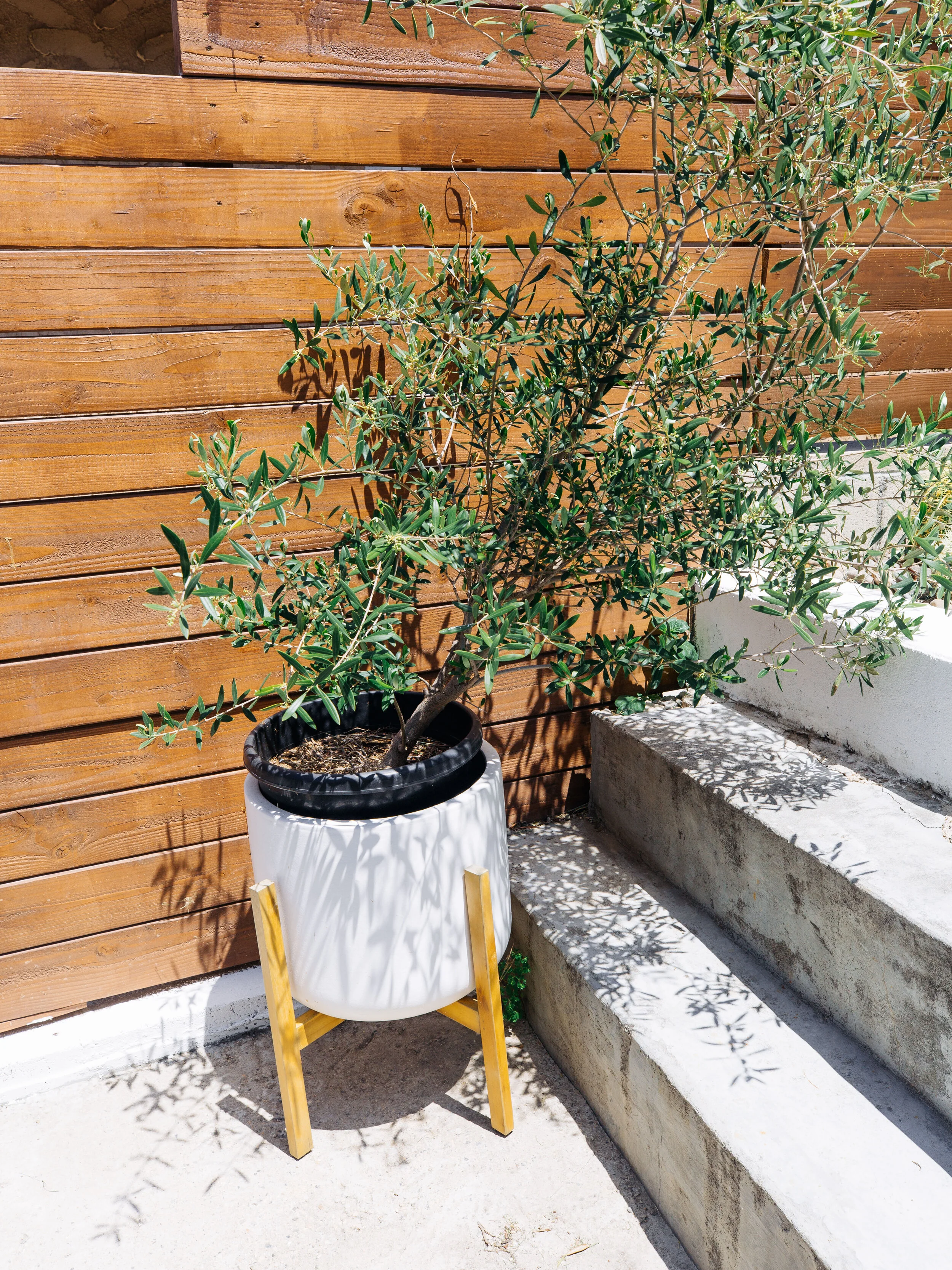 Next up was our olive tree which has been sitting in a white planter for over a year now. It was time. It looks better now with rocks on it too! We also planted some florals like Mexican marigolds way in the back. The yard needed a bit of color. They also produce a very strong scent which I love.