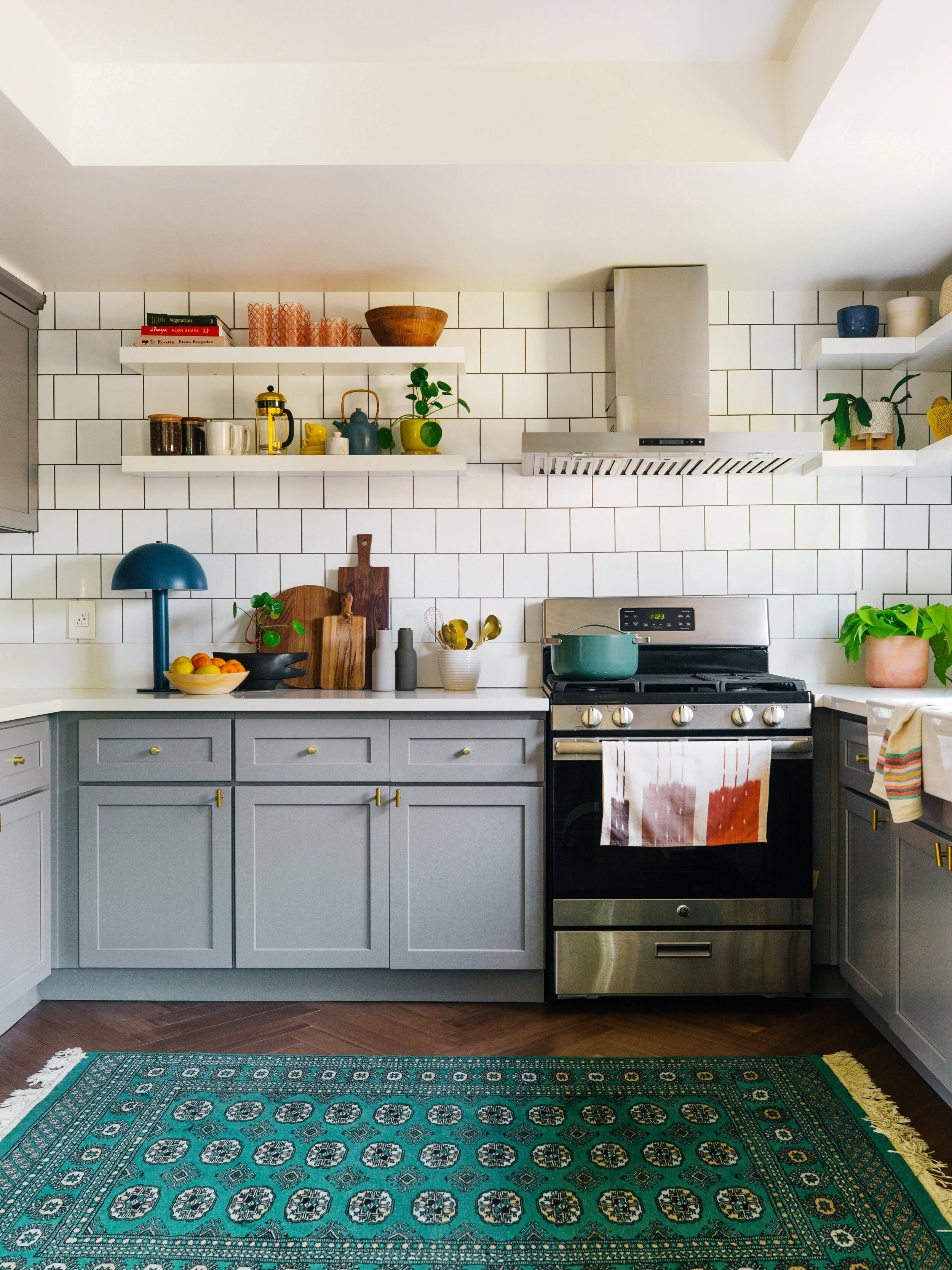 You know how I feel about grey (#anythingbutgrey). Haha! Maybe one day, I’ll repaint those cabinets. The backsplash is so wonky it drives me nuts. But it’s totally fine and I can style the hell out of this space to make it look cute.