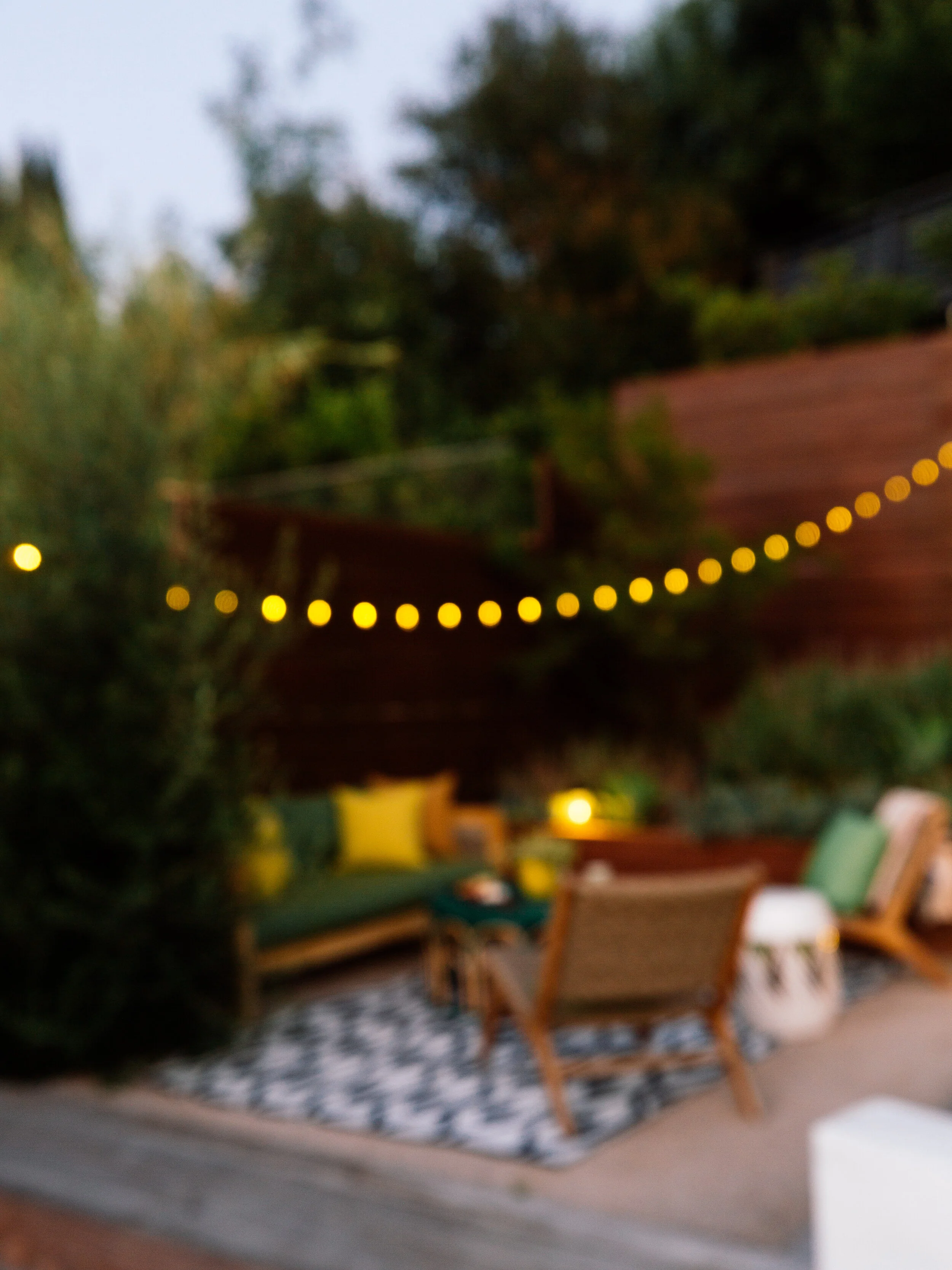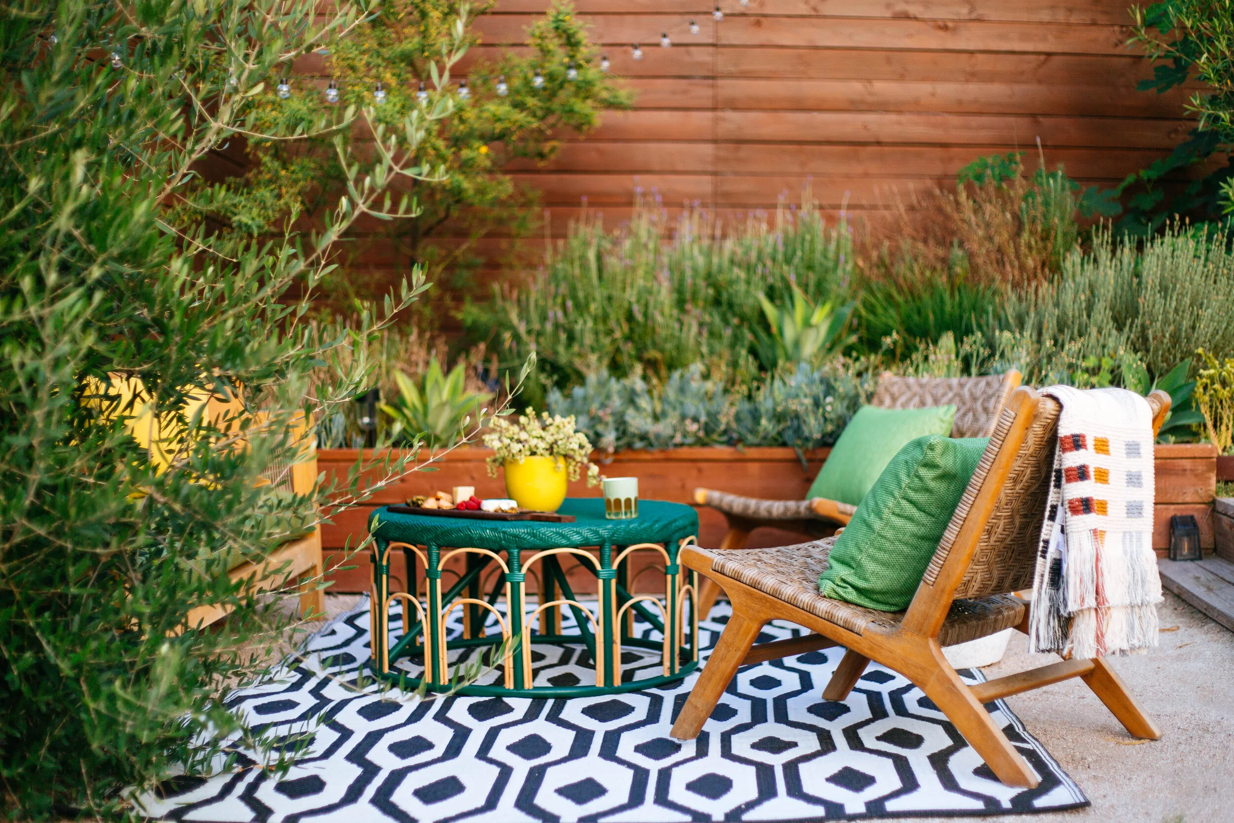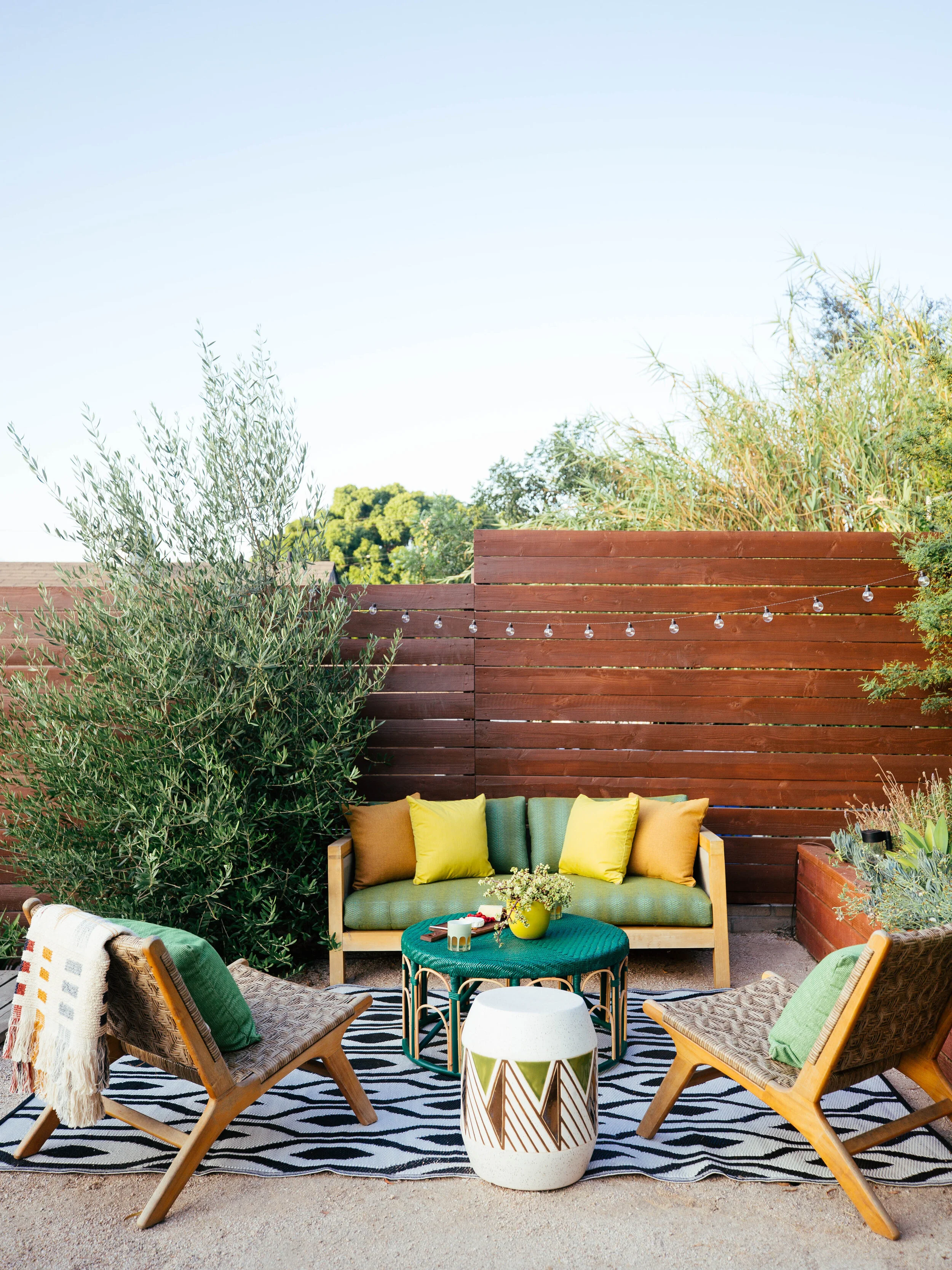Our backyard is such a labor of love. We have fantastic weather all year round in Los Angeles so we spend a lot of time outside. What I love most about the space is that we created multiple areas to wander. We have the covered patio, the upper lounge space, a grassy area for our pups to play or for our friends to toss some cornhole, a succulent garden along with a backdrop of lush drought-tolerant plants. The backyard is an extension of our home and since we’ve been using ours as our primary socializing spot, the furniture pieces we use here need to be able to handle the extra quality time they’re getting lately — which is where Sunbrella fabrics come into play.