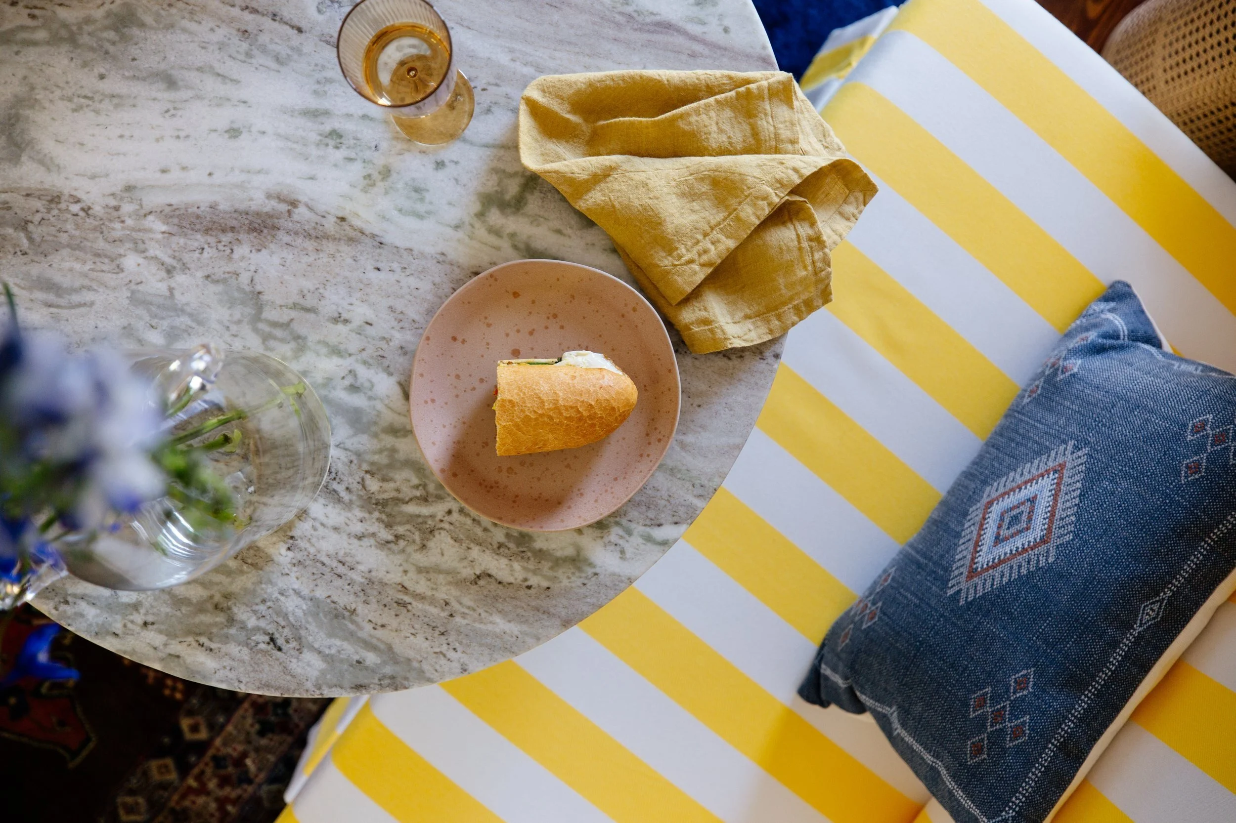 You know what they say: Once you go banquette, you don’t go back! Okay, so maybe that’s not exactly a common saying—but it should be! Back when I switched up the dining room seating in our Los Angeles house, with the help of Sunbrella, it was a total game changer. So when we had the opportunity to work together again, I knew just the project to take on – another banquette!