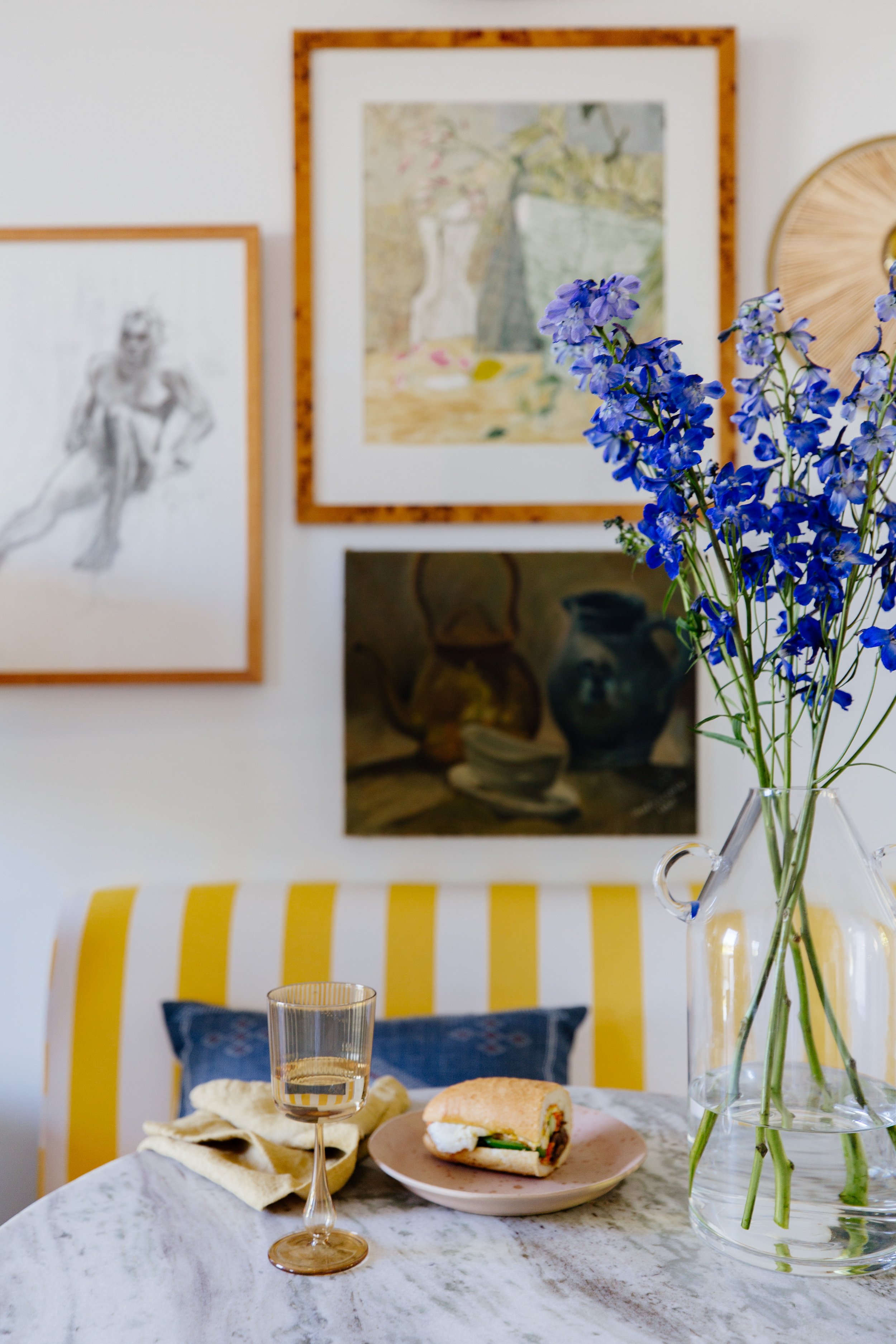 Once the custom banquette was complete, I got to do my styling thing! A cushion here, art there, and some florals to finish off the table top and our new dining area was complete. It’s extra cozy, but it actually really completed the space! And the best part? Now we have our own little bistro inside to read with a little coffee or tea, or enjoy an intimate meal. I’m so grateful to Sunbrella for giving me the chance to customize yet another space and make our New Orleans home so much more functional and gorge.