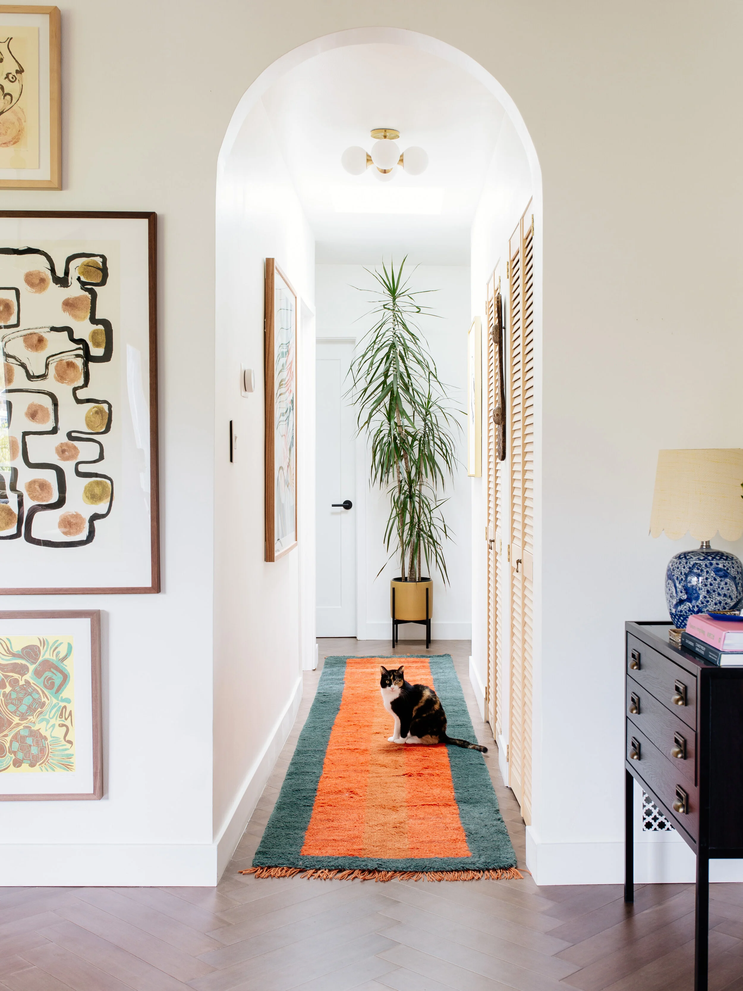 During the four years of living in this house, I added a skylight, installed bifold doors for the closets, and created an arch to add some architectural detail to the space. Now, it’s time to find the perfect runner to bring it all together. And I’m excited to partner with Revival Rugs for this!