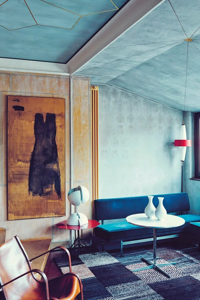 Seeing how moody and bold blues bring to these spaces got me thinking about my home. I think a blue chair would be great in my living room. I need all the cooler tones to balance my yellows. Or maybe I'll just paint over my yellow door. Say what? I know I just painted it. But it's just paint and it takes seriously 30 minutes to do it. It'll be a mood door!