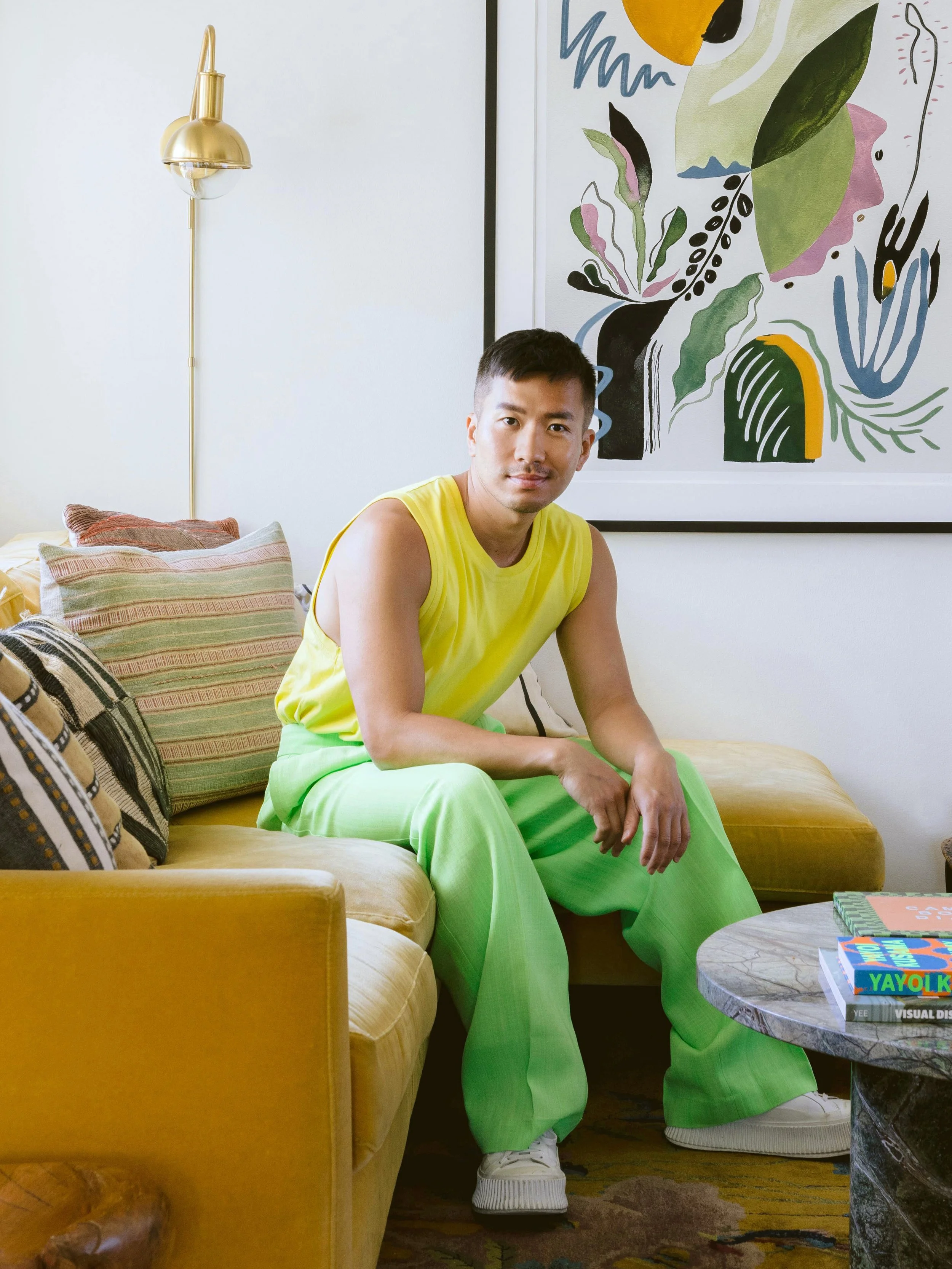 Dabito is a designer, artist, photographer, and passionate vintage hunter. His use of bold color and eclectic maximalism cemented him as an always refreshing and ever-evolving influence in the world of interior design. Since 2010, his studio and blog, Old Brand New amassed a devoted following across multiple platforms and has been recognized by Better Homes & Gardens, the New York Times, Architectural Digest and House Beautiful. Additionally, his collections of tiles, lighting, and prints are sold at retailers nationwide. Dabito's guiding design philosophy is that everyone can harness the power of color and meaningful objects to tell a moving and personal story in the home. He splits his time between Los Angeles and New Orleans with his husband, Ryan, and their fur babies, Luigi, Sterling, and Verbena.